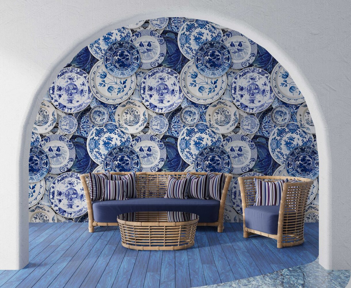 Antik Mavi Porselen Tabaklar Duvar Kağıdı üretimi, uygulanmasını isteyeceğiniz boyut ve konumuna uygun olarak talepleriniz doğrultusunda size özel imal edilir.