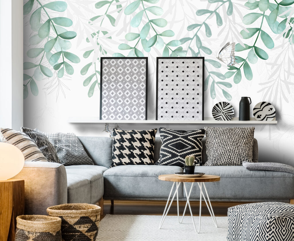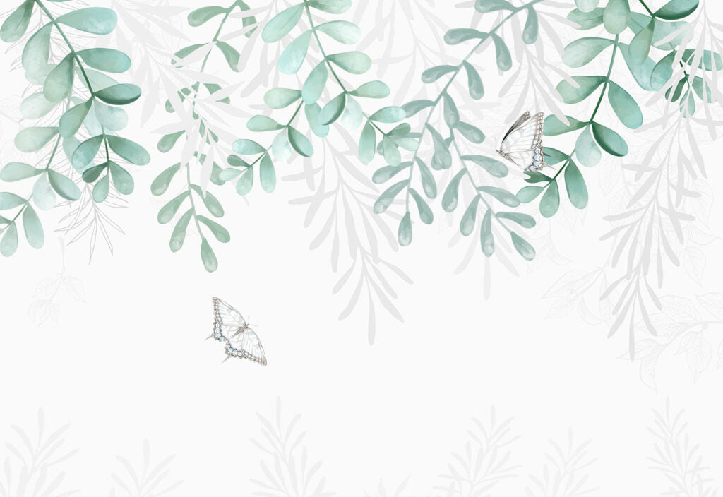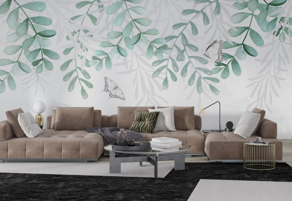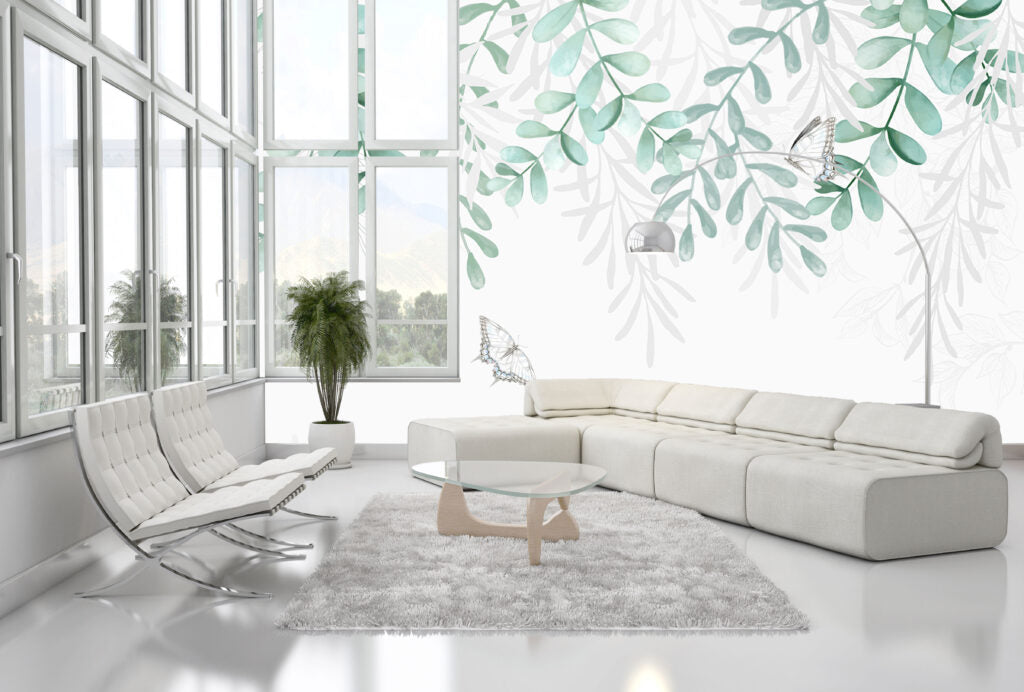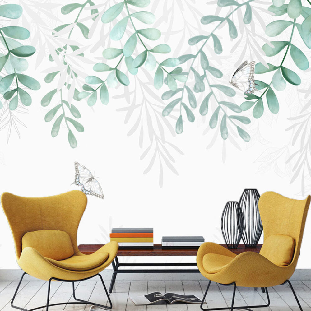 Aşağıya Sarkan Ağaç Yaprağı Desenli 3D Duvar Kağıdı