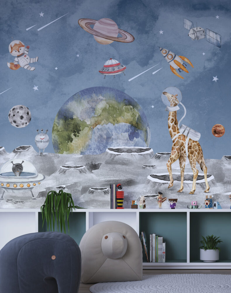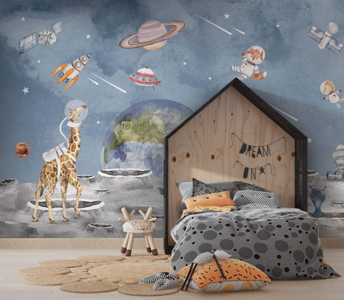 Astronot Hayvanlar Duvar Kağıdı üretimi, uygulanmasını isteyeceğiniz boyut ve konumuna uygun olarak talepleriniz doğrultusunda size özel imal edilir.