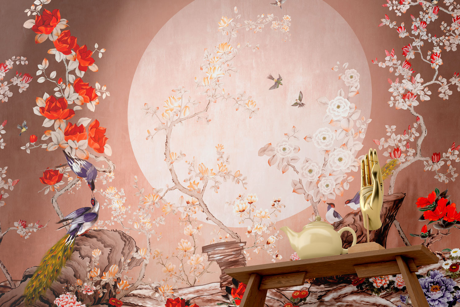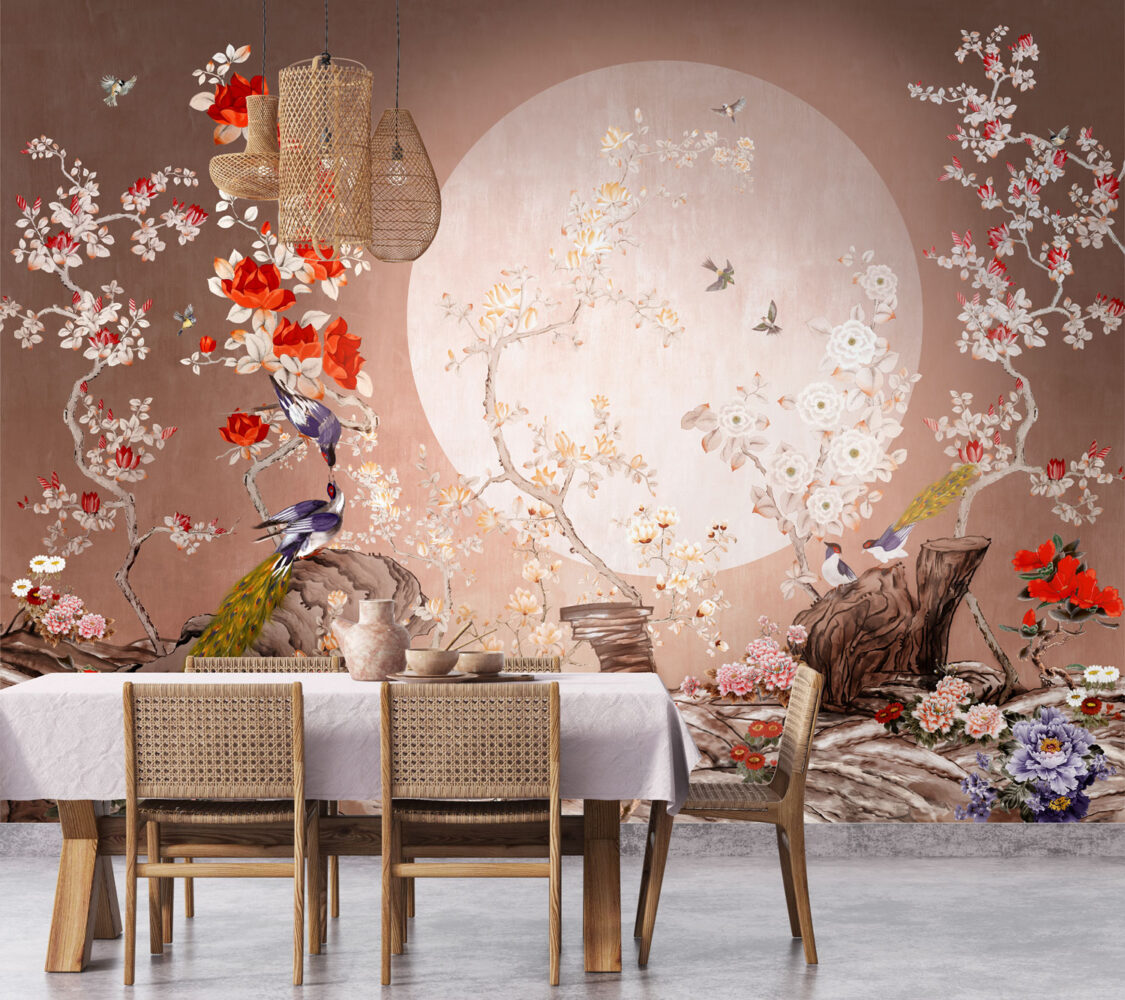 Ay Işığında Güller ve Tavus Kuşları Duvar Kağıdı Duvar Kağıdı Ürün Bilgisi
