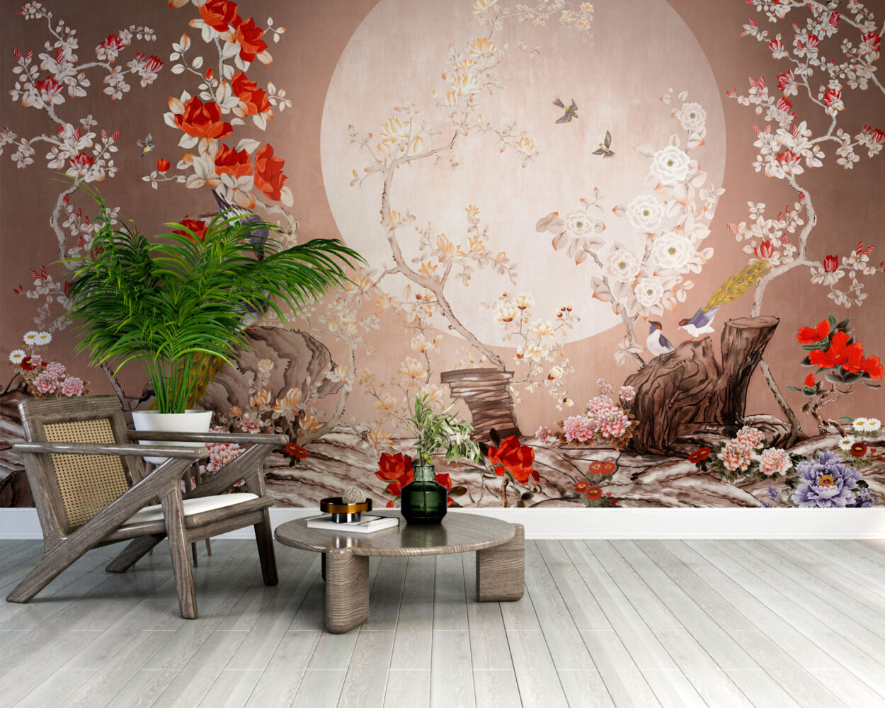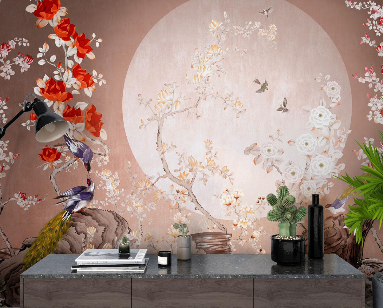 Ay Işığında Güller ve Tavus Kuşları Duvar Kağıdı üretimi, uygulanmasını isteyeceğiniz boyut ve konumuna uygun olarak talepleriniz doğrultusunda size özel imal edilir.