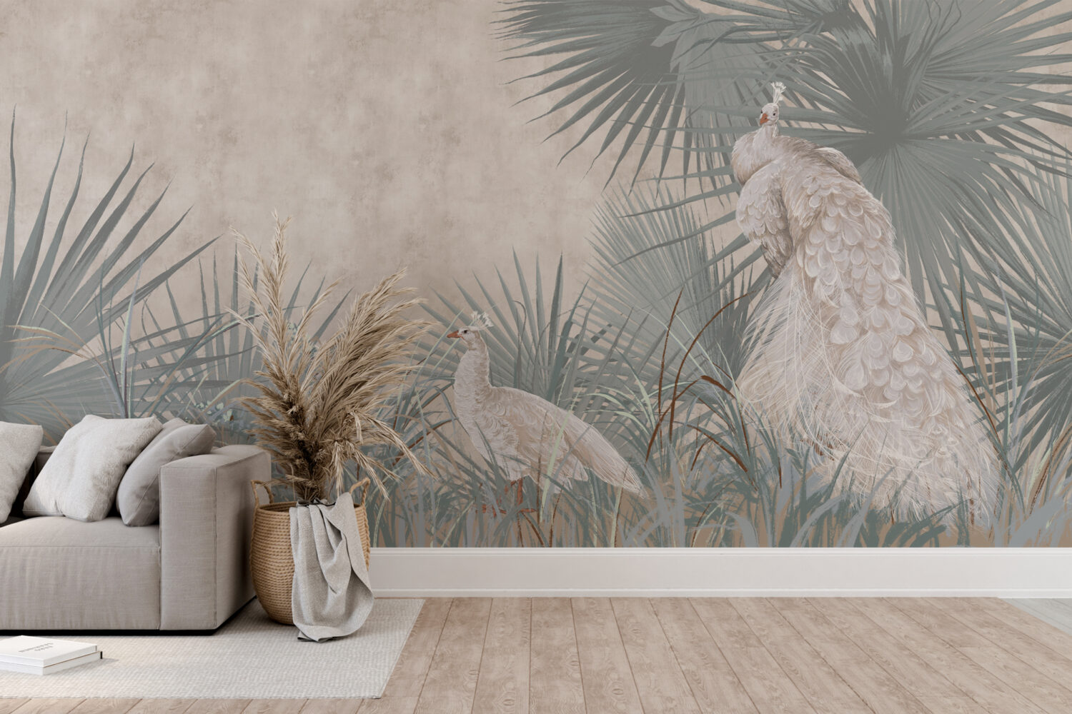 Bahçede Beyaz Tavus Kuşları Duvar Kağıdı üretimi, uygulanmasını isteyeceğiniz boyut ve konumuna uygun olarak talepleriniz doğrultusunda size özel imal edilir.