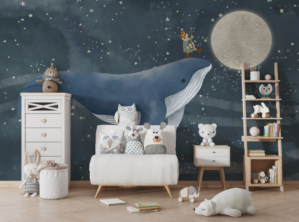 Balinanın Üstünde Giden Çocuk Desenli 3D Duvar Kağıdı Duvar Kağıdı Ürün Bilgisi