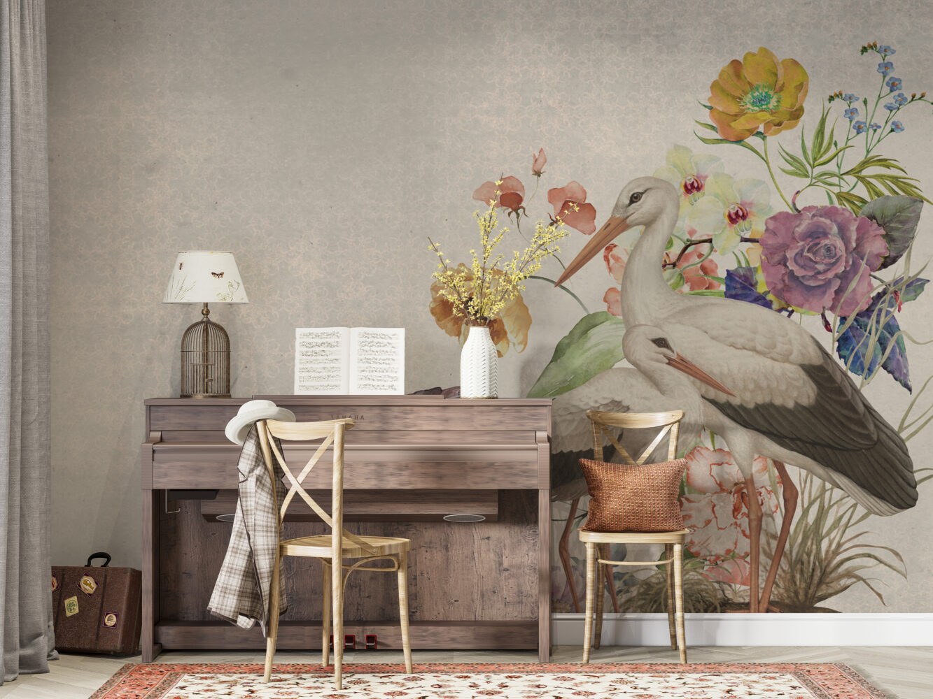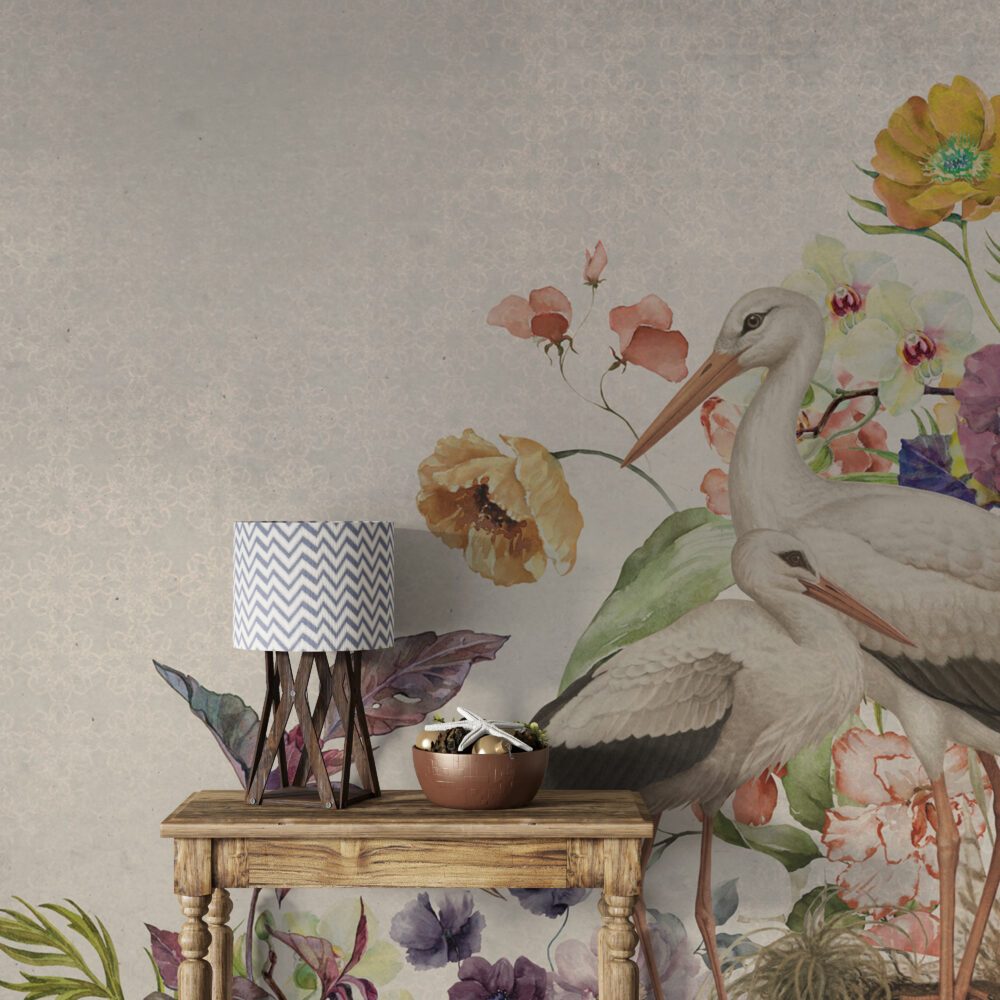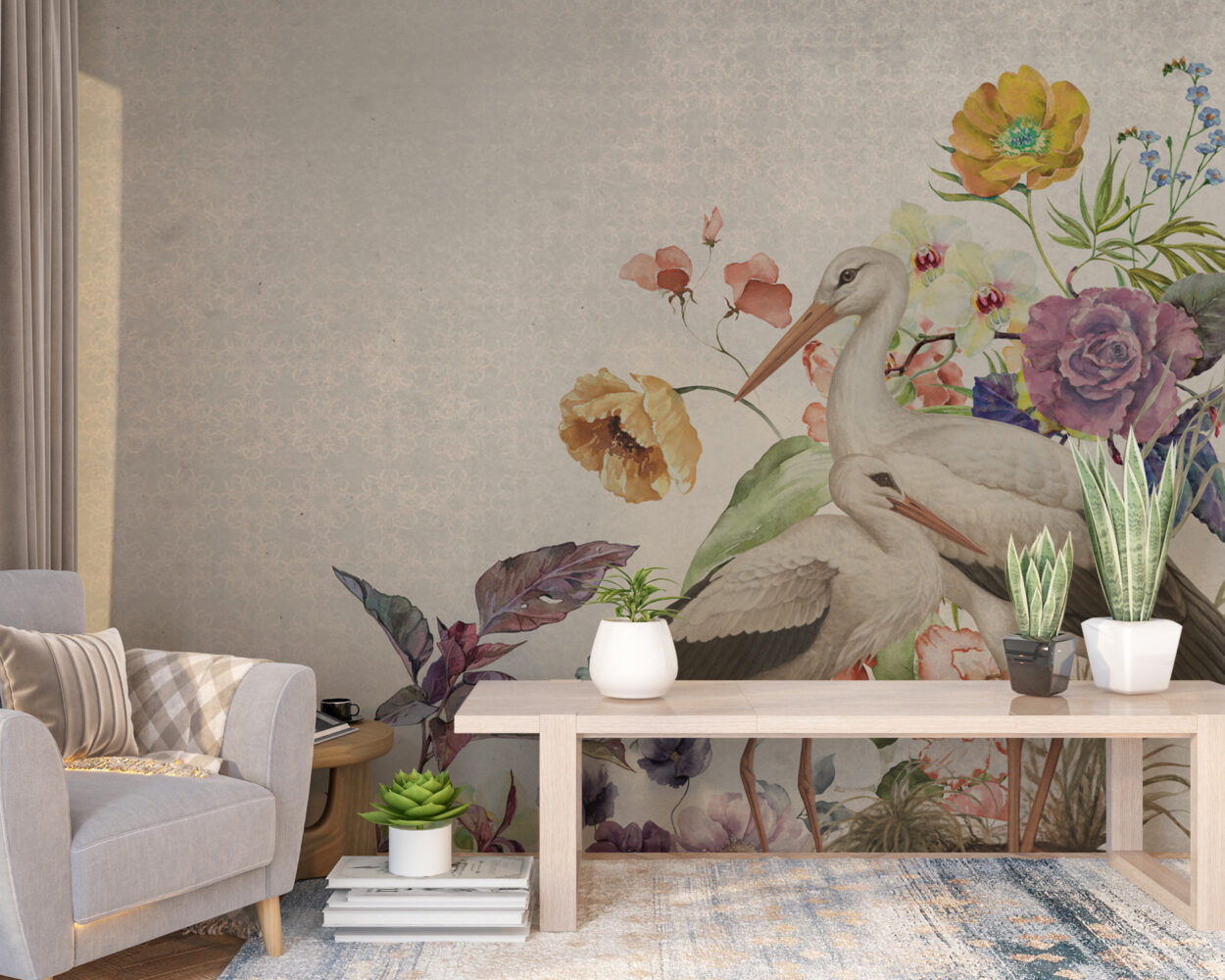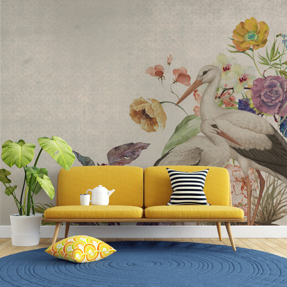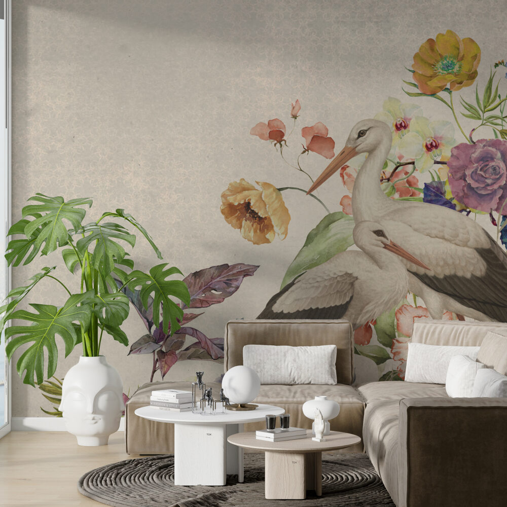 Bej Desenli Leylekler Ve Çiçekler Duvar Kağıdı Duvar Kağıdı Ürün Bilgisi