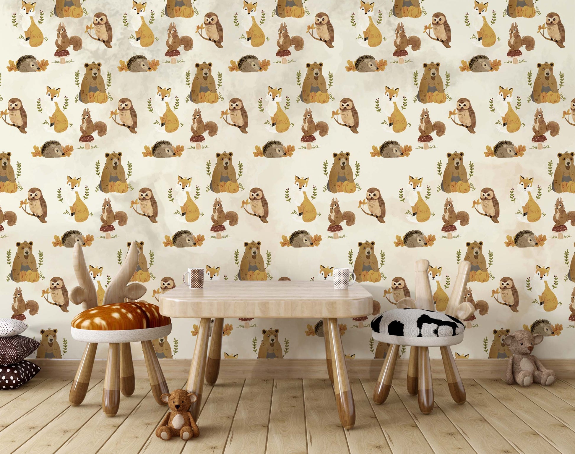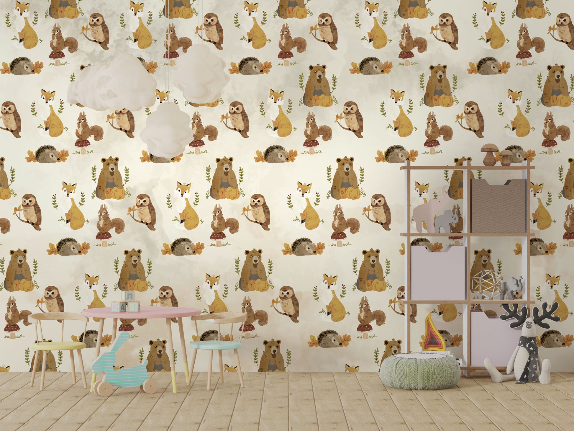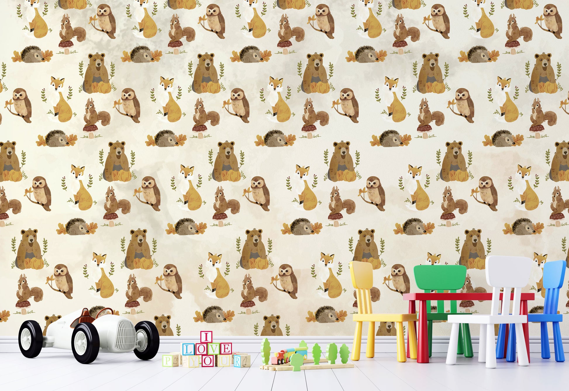 Bej Fonda Orman Canlıları Duvar Kağıdı Duvar Kağıdı Ürün Bilgisi