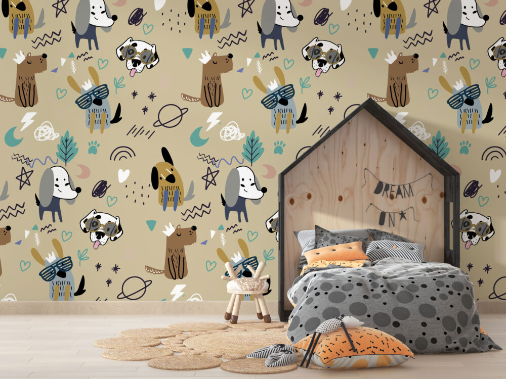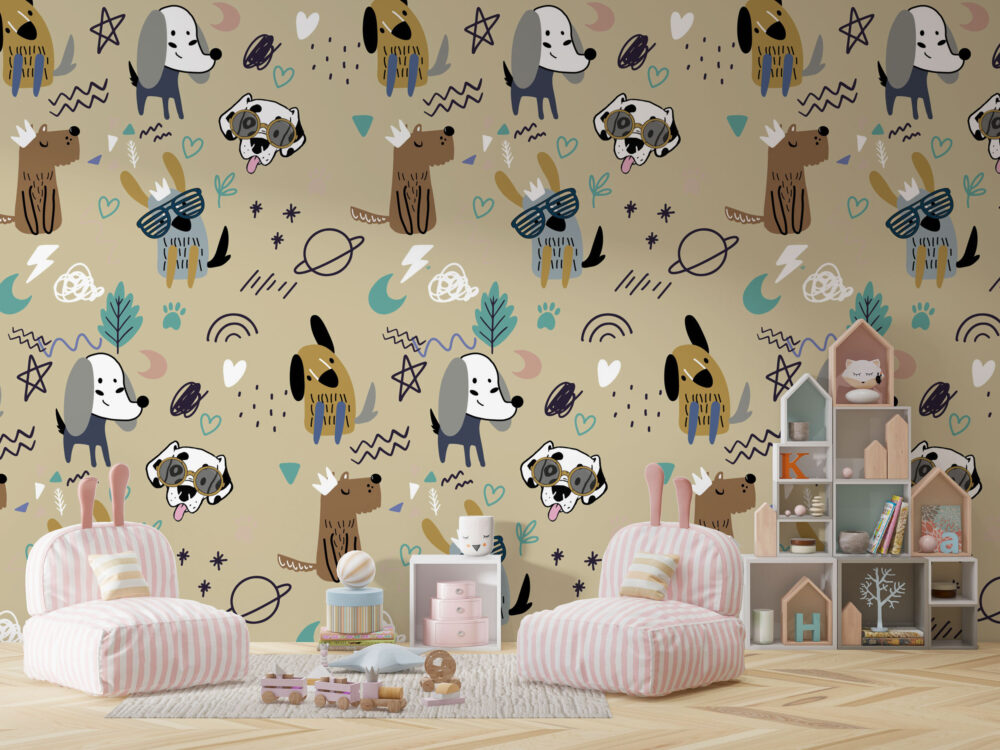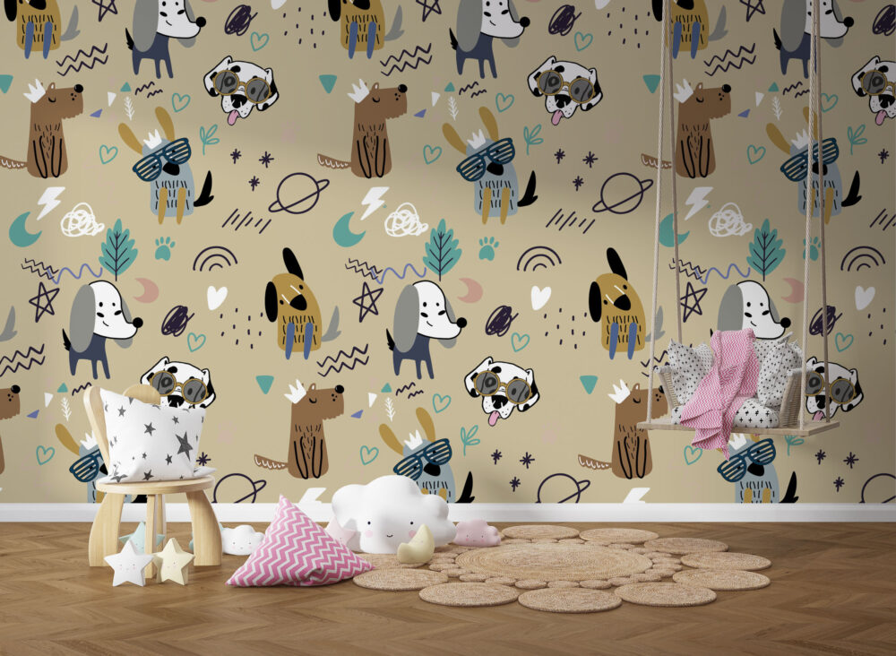 Bej Kahverengi Zeminli Sevimli Köpekler Duvar Kağıdı Duvar Kağıdı Ürün Bilgisi