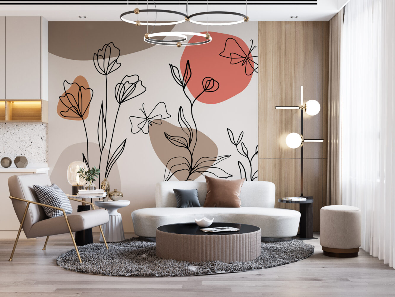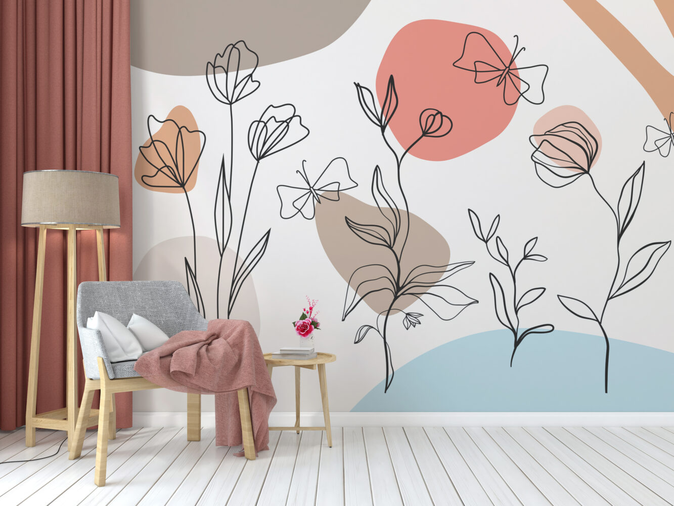 Bej Rengi Tonlar'da Çizgisel Çicek Duvar Kağıdı üretimi, uygulanmasını isteyeceğiniz boyut ve konumuna uygun olarak talepleriniz doğrultusunda size özel imal edilir.