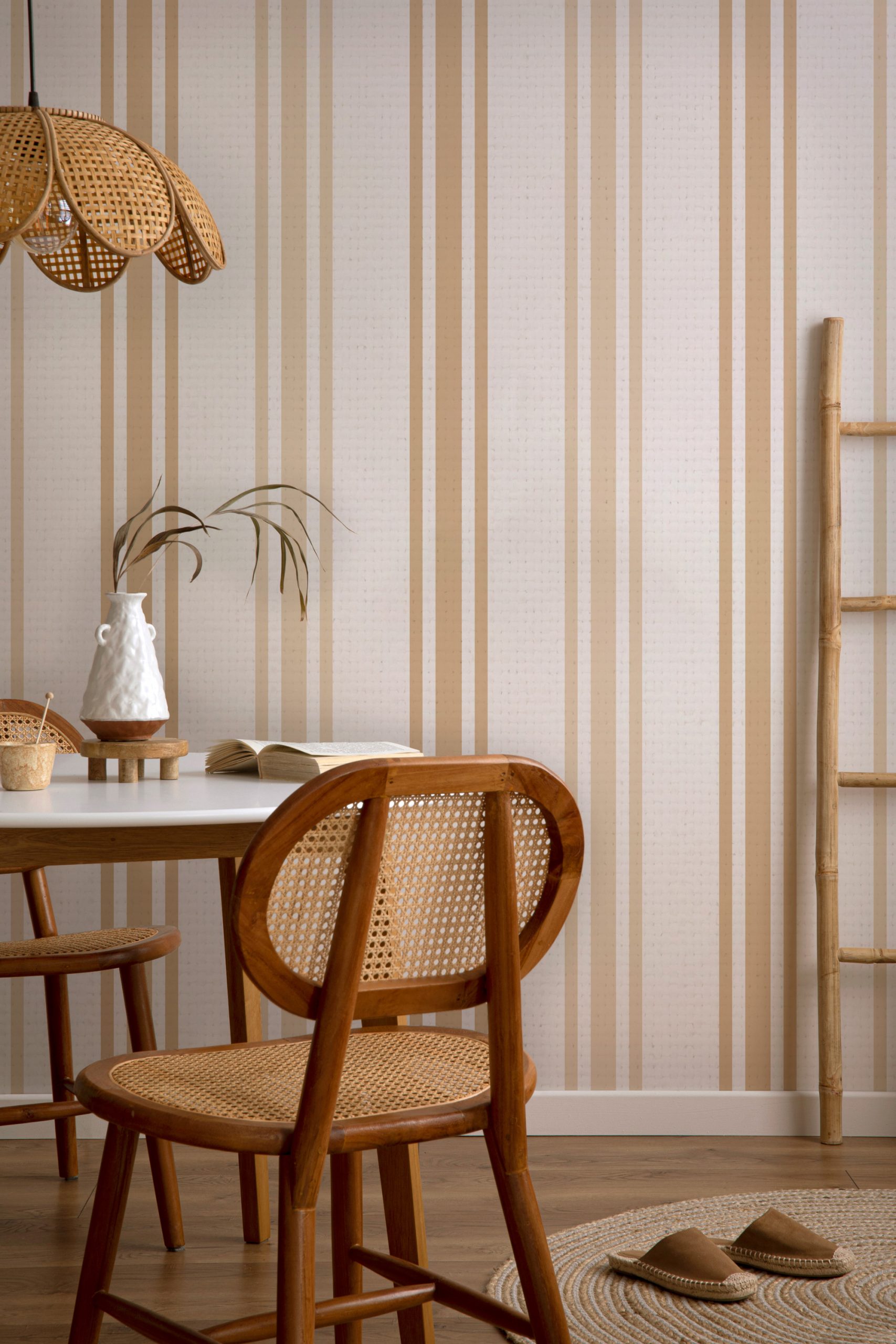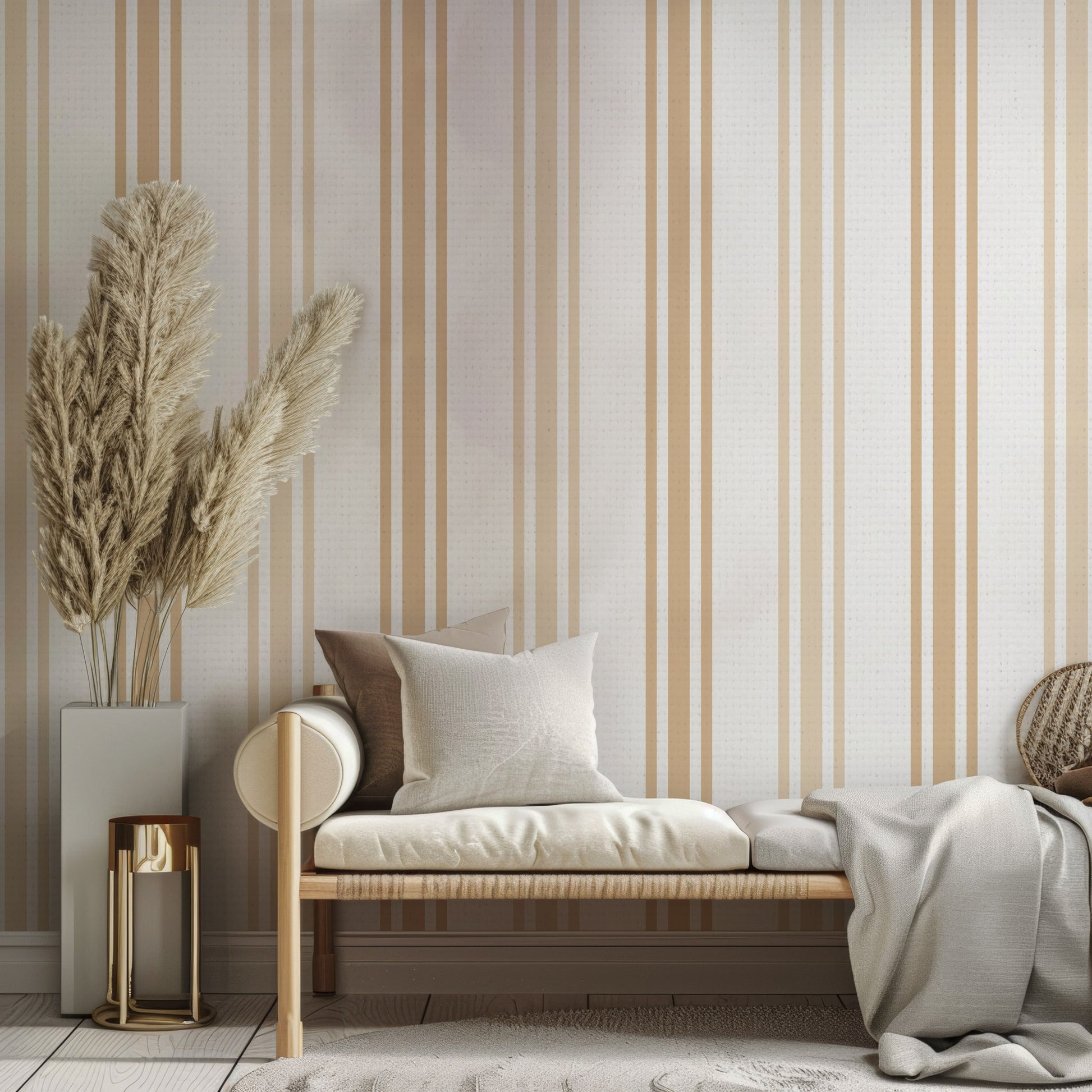Bej ve Toprak Tonlarında Çizgili Duvar Kağıdı