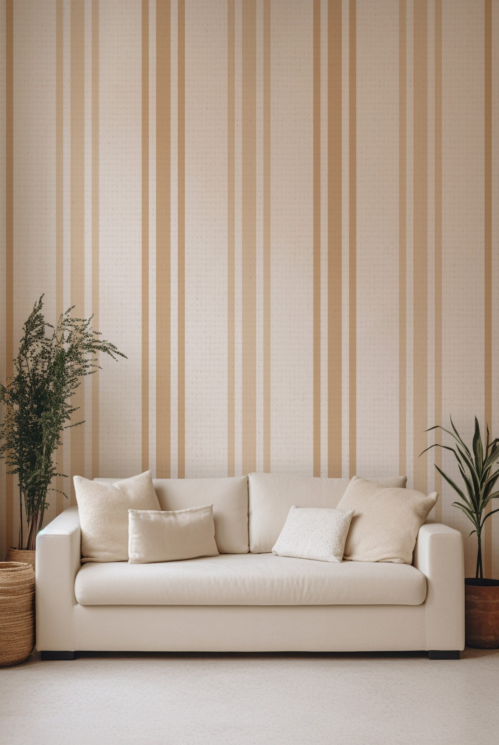 Bej ve Toprak Tonlarında Çizgili Duvar Kağıdı üretimi, uygulanmasını isteyeceğiniz boyut ve konumuna uygun olarak talepleriniz doğrultusunda size özel imal edilir.