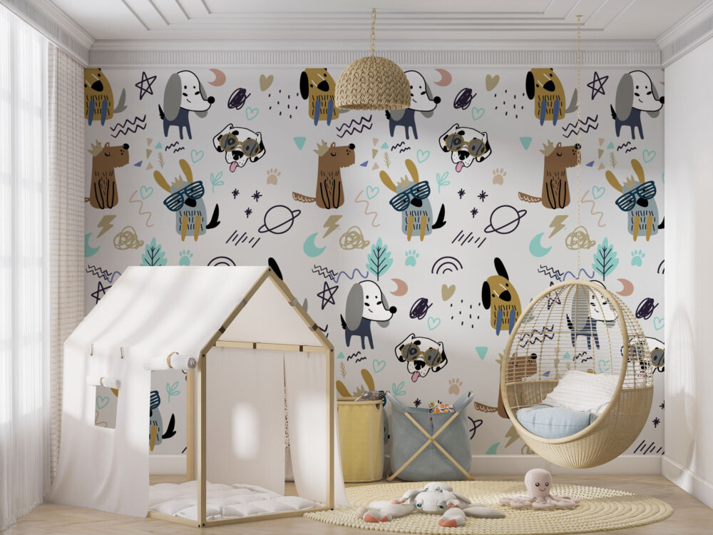 Beyaz Zeminli Sevimli Köpekler Duvar Kağıdı Duvar Kağıdı Ürün Bilgisi