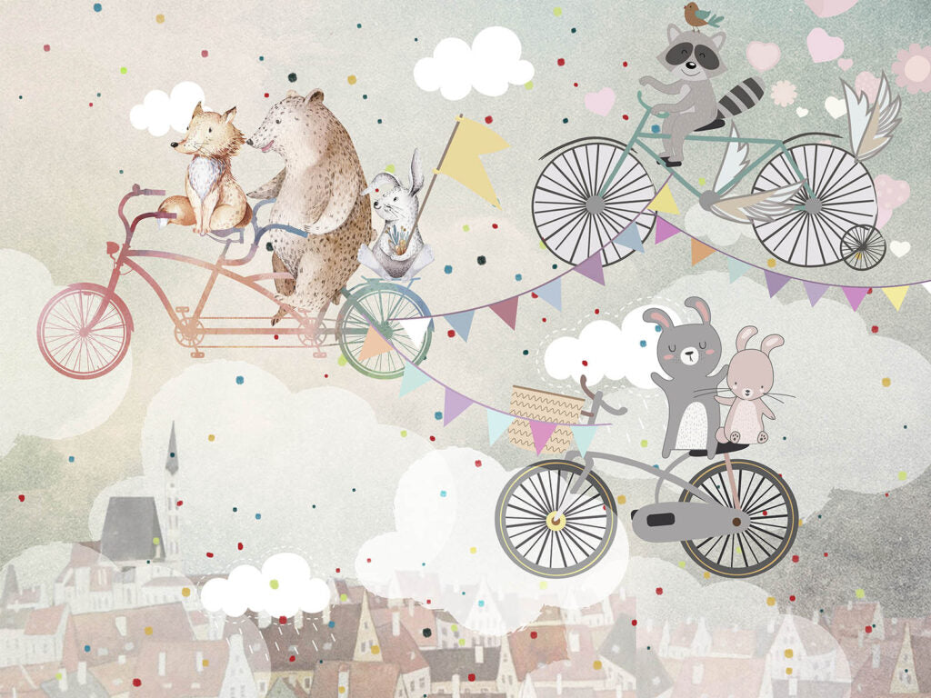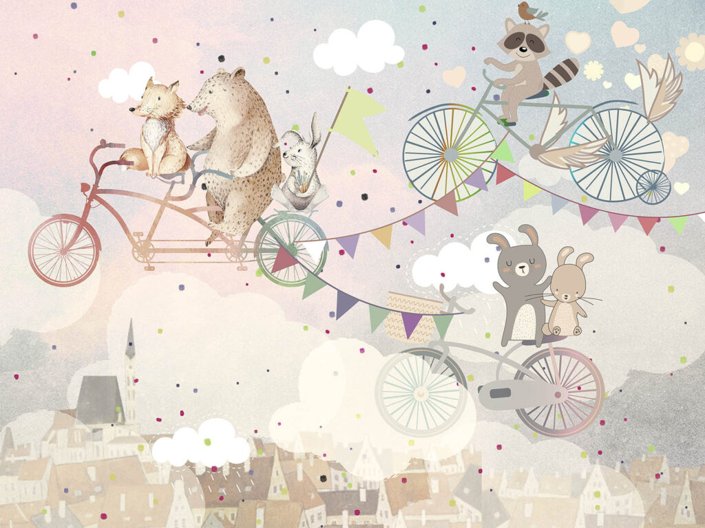 Bisikletin Üzerindeki Hayvanlar 3D Duvar Kağıdı | Duvar Kağıdı Marketi Duvar Kağıdı Ürün Bilgisi