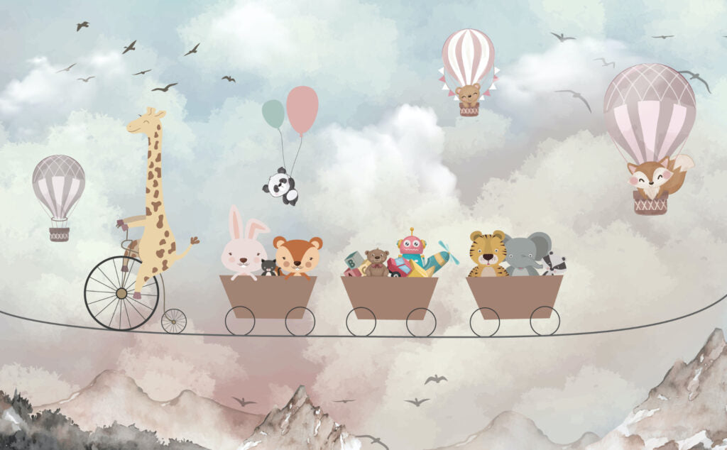 Bisikletli Zürafa ve Balonlar 3D Duvar Kağıdı | Duvar Kağıdı Marketi üretimi, uygulanmasını isteyeceğiniz boyut ve konumuna uygun olarak talepleriniz doğrultusunda size özel imal edilir.