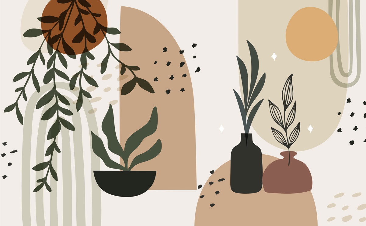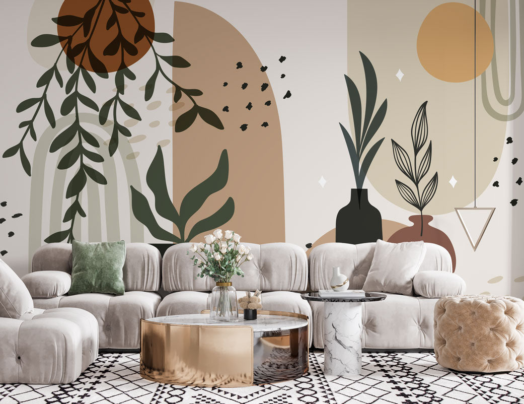 Bohem Tonlarda Geometrik Desenler Botanik Duvar Kağıdı