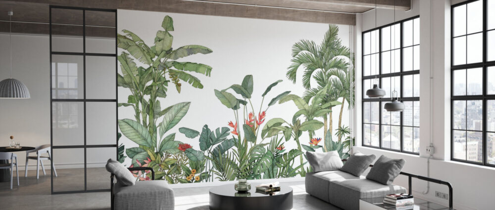 Büyük Ağaçlı Tropikal Desenli Duvar Kağıdı