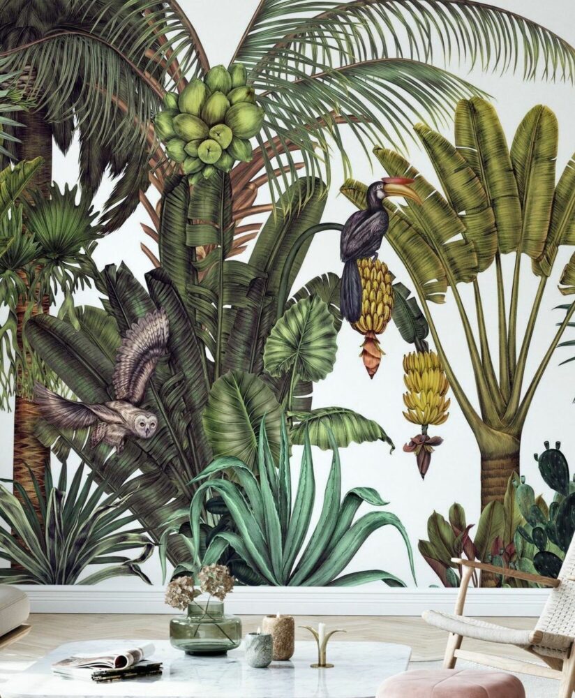 Büyük Dalın Üzerindeki Kuş Tropikal Desenli Duvar Kağıdı Duvar Kağıdı Ürün Bilgisi