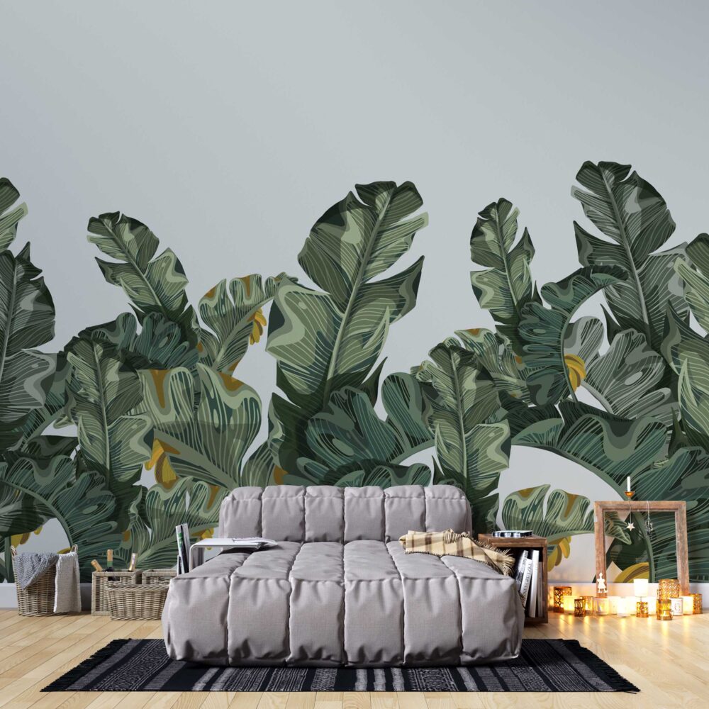 Büyük Muz Ağacı Yaprakları Tropikal Duvar Kağıdı | Duvar Kağıdı Marketi üretimi, uygulanmasını isteyeceğiniz boyut ve konumuna uygun olarak talepleriniz doğrultusunda size özel imal edilir.