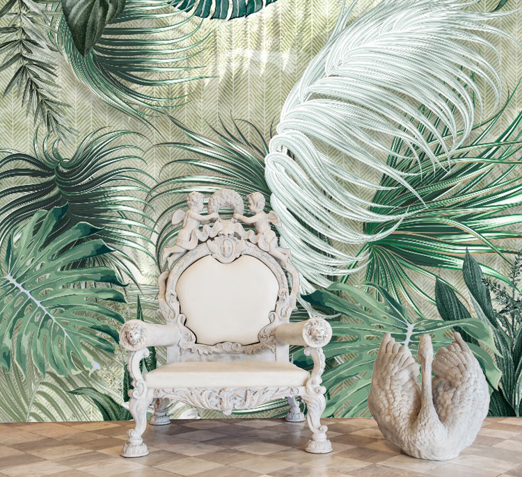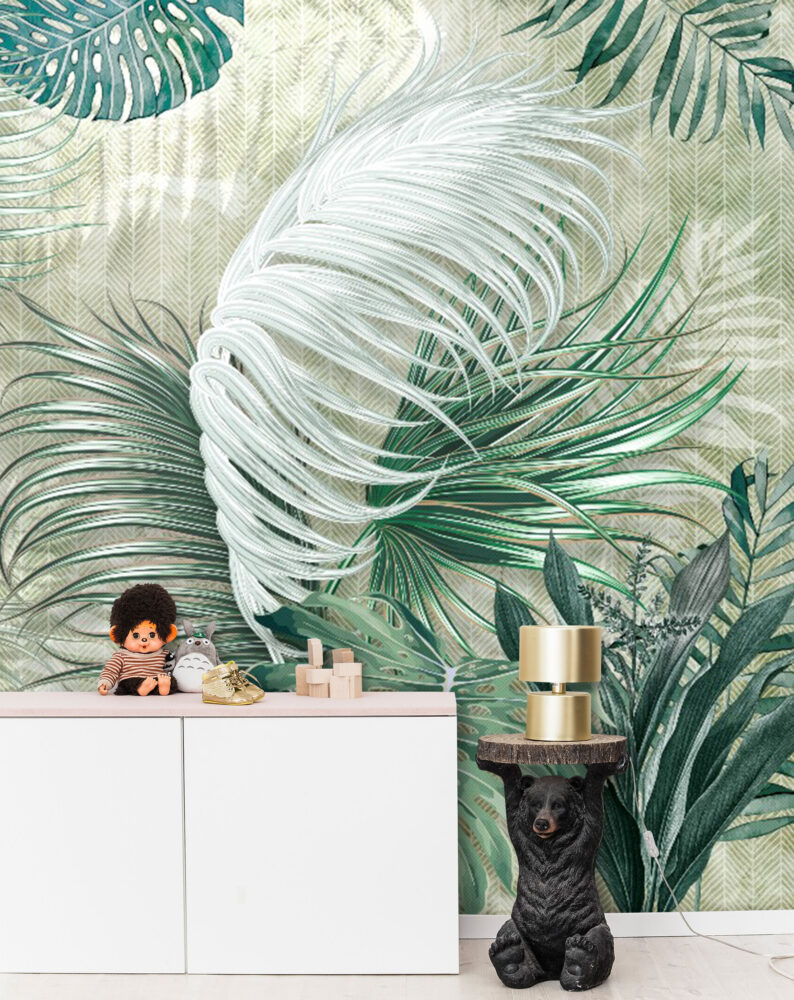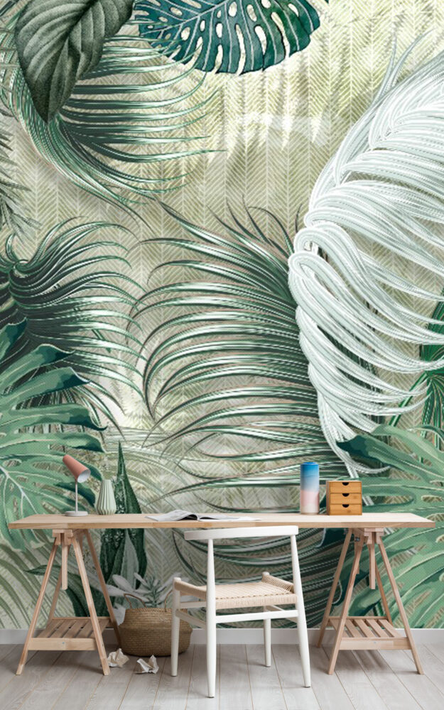 Büyük Savrulan Tropikal Yapraklar Duvar Kağıdı | Duvar Kağıdı Marketi üretimi, uygulanmasını isteyeceğiniz boyut ve konumuna uygun olarak talepleriniz doğrultusunda size özel imal edilir.