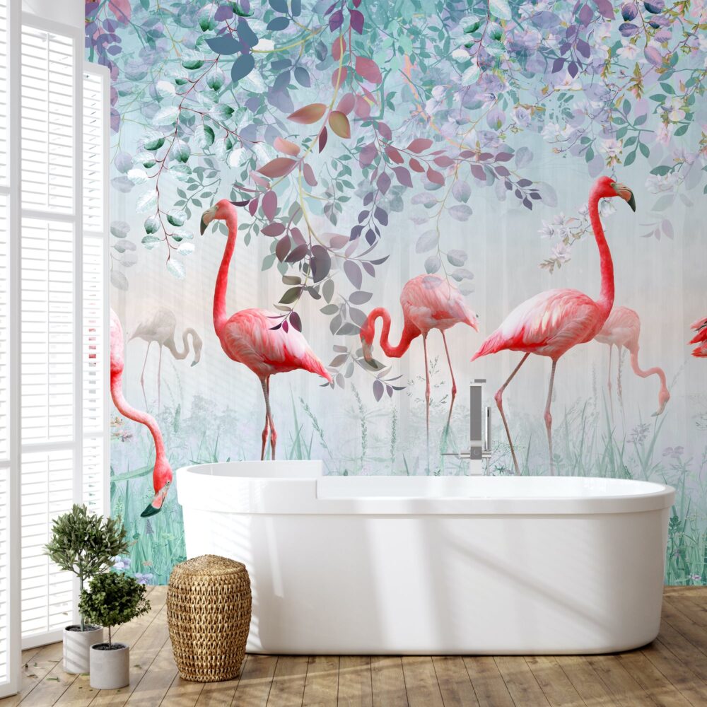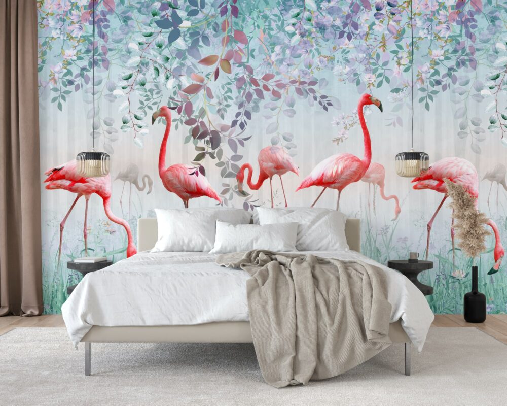 Çiçek Üzerindeki Flamingolar 3D Duvar Kağıdı Duvar Kağıdı Ürün Bilgisi