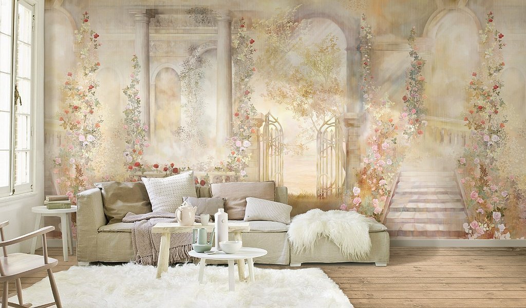 Çiçeklerle Donatılmış Sarı Tonlarda Roma Kapıları Duvar Kağıdı üretimi, uygulanmasını isteyeceğiniz boyut ve konumuna uygun olarak talepleriniz doğrultusunda size özel imal edilir.