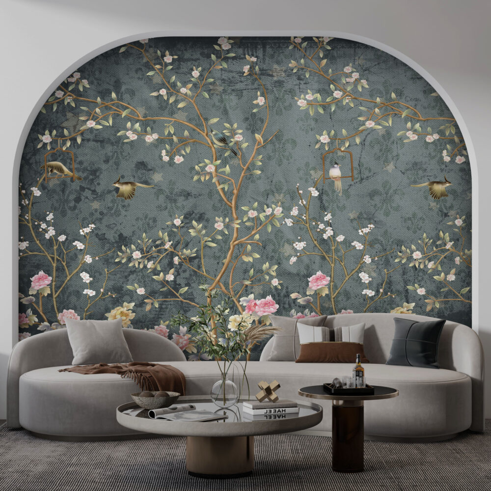 Çin Motifi Güller ve Bülbül Duvar Kağıdı üretimi, uygulanmasını isteyeceğiniz boyut ve konumuna uygun olarak talepleriniz doğrultusunda size özel imal edilir.