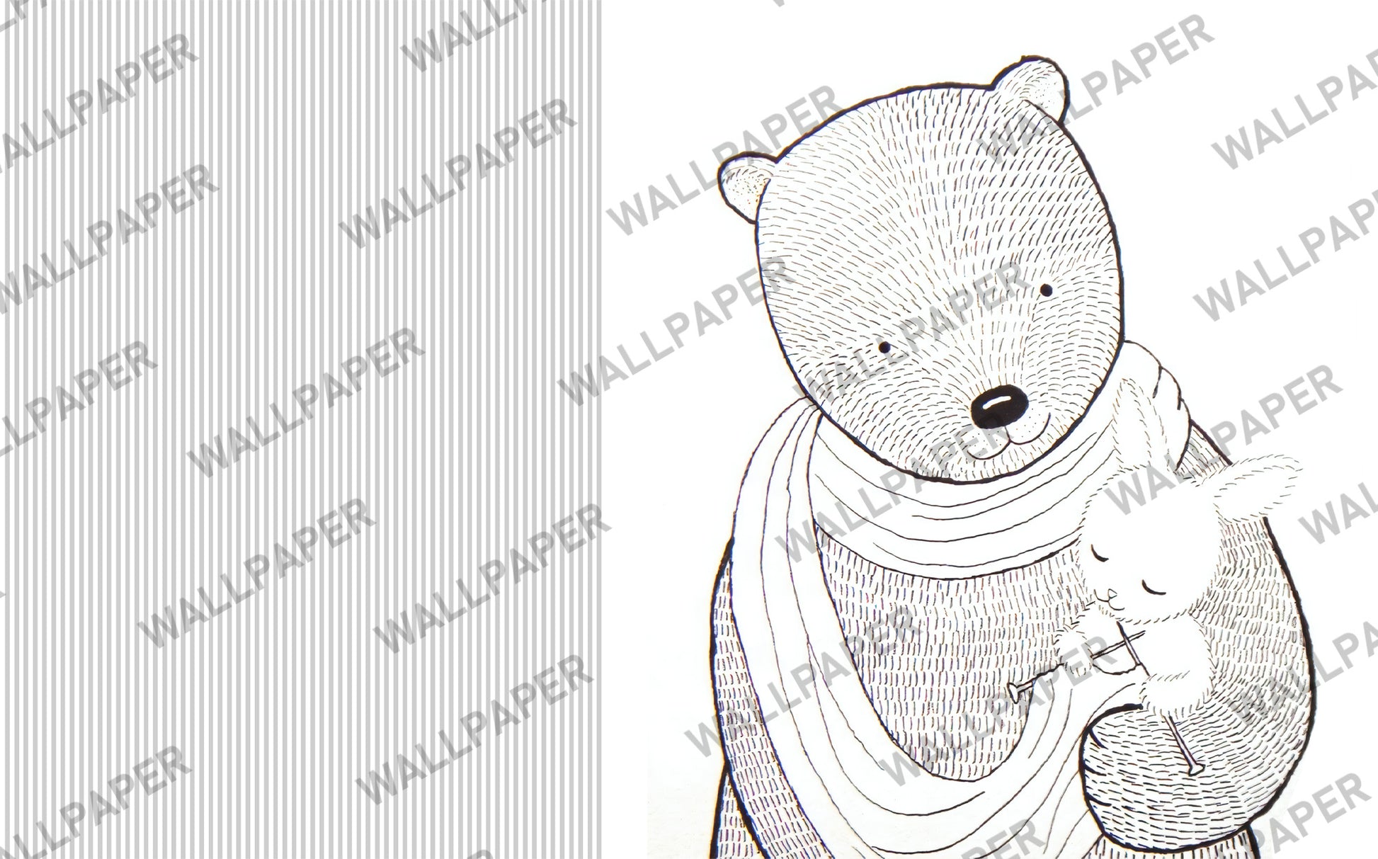 Çizgisel Ayı Anne Çıta Görünüm Siyah Beyaz Duvar Kağıdı Duvar Kağıdı Ürün Bilgisi