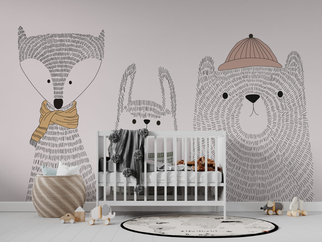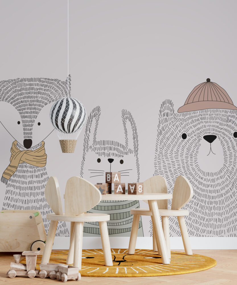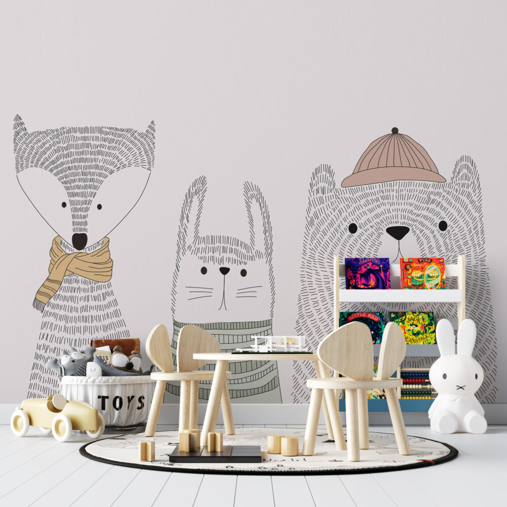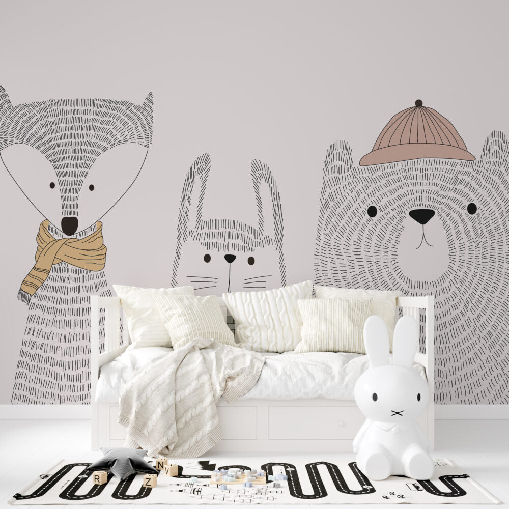 Çizgisel Gri Tonlarda Sevimli Hayvanlar Duvar Kağıdı üretimi, uygulanmasını isteyeceğiniz boyut ve konumuna uygun olarak talepleriniz doğrultusunda size özel imal edilir.