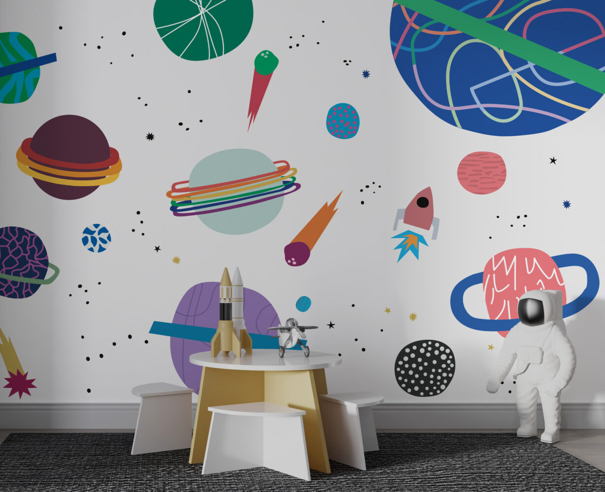 Çizgisel Uzay ve Gezegenler Duvar Kağıdı üretimi, uygulanmasını isteyeceğiniz boyut ve konumuna uygun olarak talepleriniz doğrultusunda size özel imal edilir.