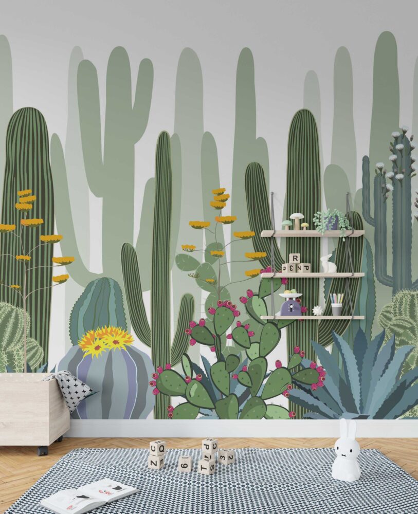 Çocuk Odaların Kaktüs Desenli Duvar Kağıdı