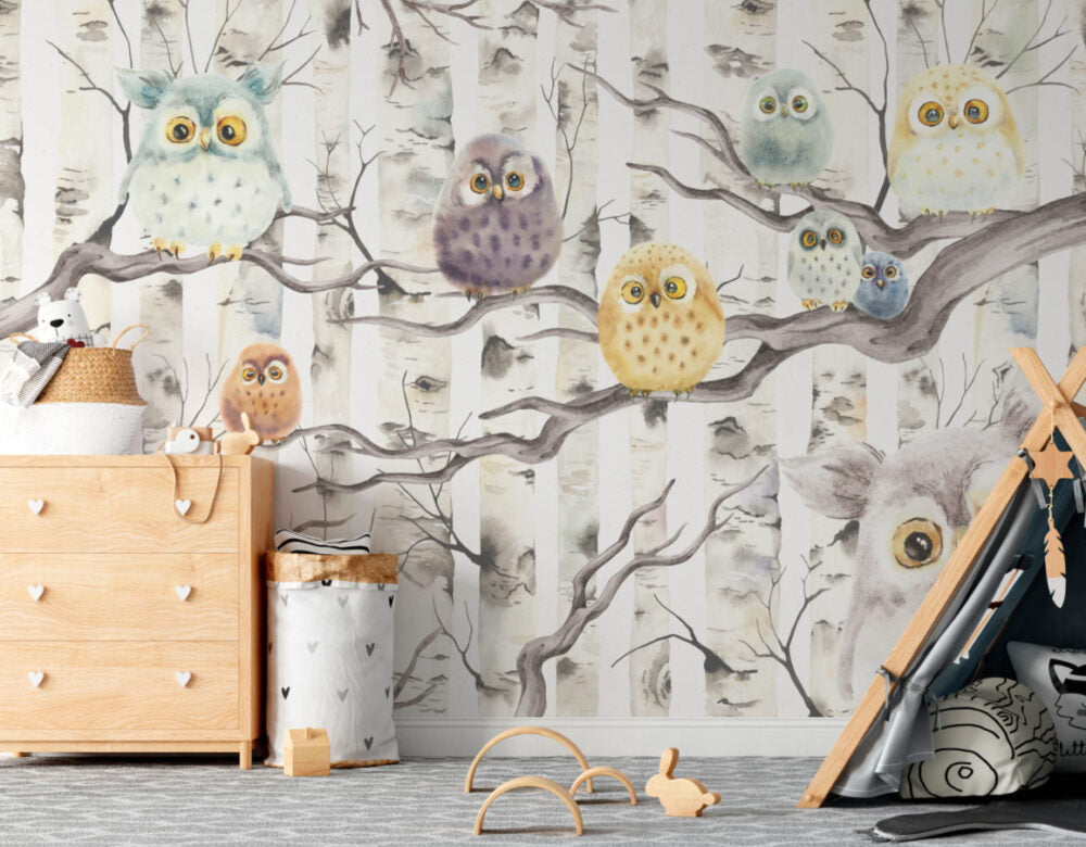 Çocuk Odası İçin Baykuşlu Duvar Kağıdı | Duvar Kağıdı Marketi