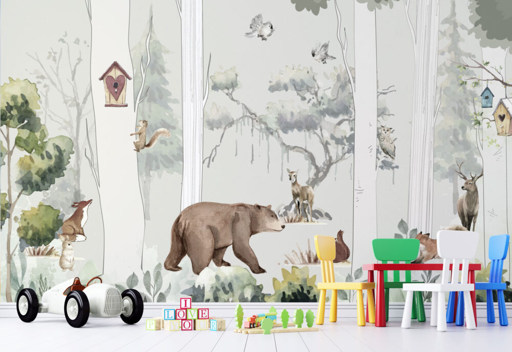 Çocuk Odası için Ormandaki Hayvanlar 3D Duvar Kağıdı | Duvar Kağıdı Marketi üretimi, uygulanmasını isteyeceğiniz boyut ve konumuna uygun olarak talepleriniz doğrultusunda size özel imal edilir.