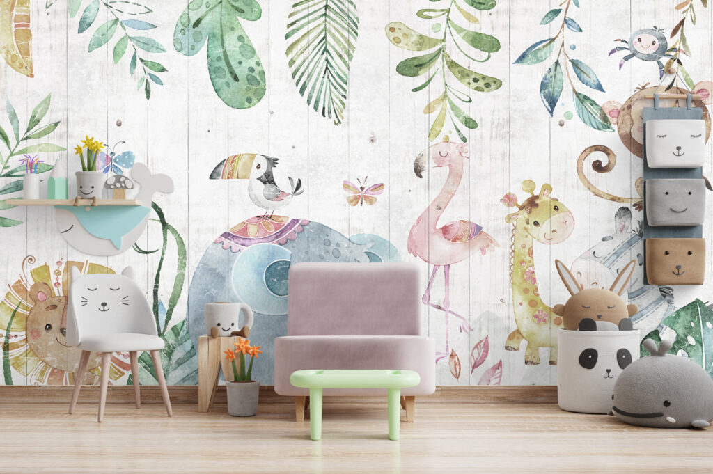 Çok Çeşit Hayvanlı Çizgili Desenli 3D Duvar Kağıdı | Duvar Kağıdı Marketi üretimi, uygulanmasını isteyeceğiniz boyut ve konumuna uygun olarak talepleriniz doğrultusunda size özel imal edilir.