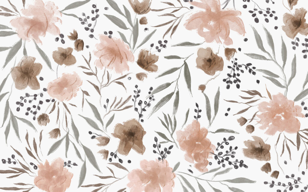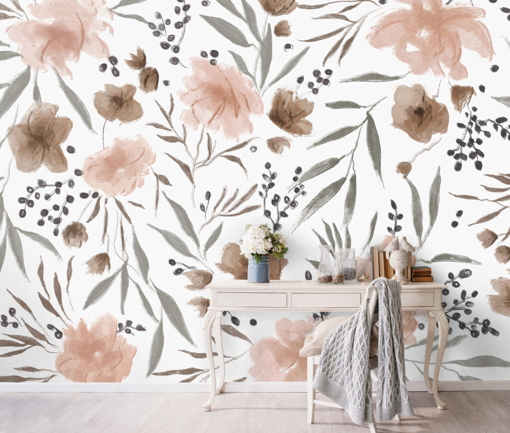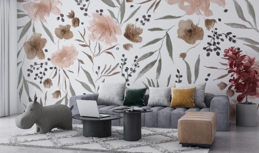 Çok Çeşit Yaprak ve Çiçek Desenli 3D Duvar Kağıdı