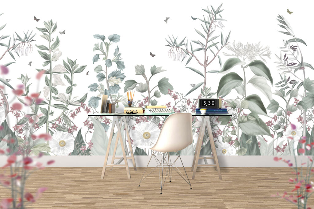 Çok Çeşit Yeşil Bitki ve Çiçek Desenli 3D Duvar Kağıdı üretimi, uygulanmasını isteyeceğiniz boyut ve konumuna uygun olarak talepleriniz doğrultusunda size özel imal edilir.