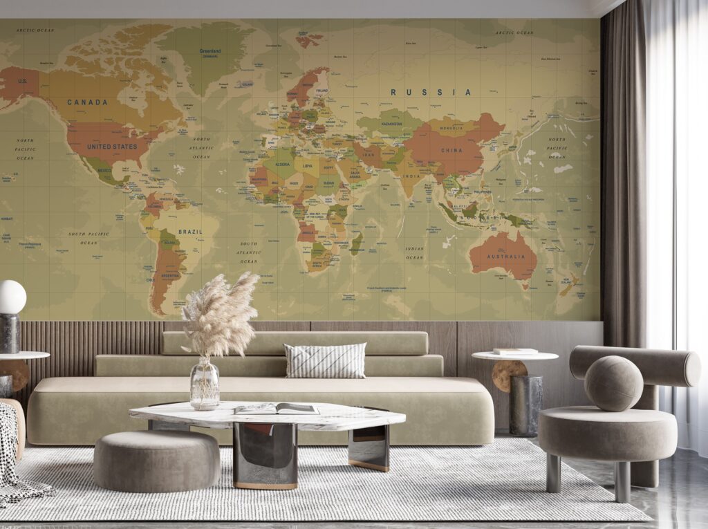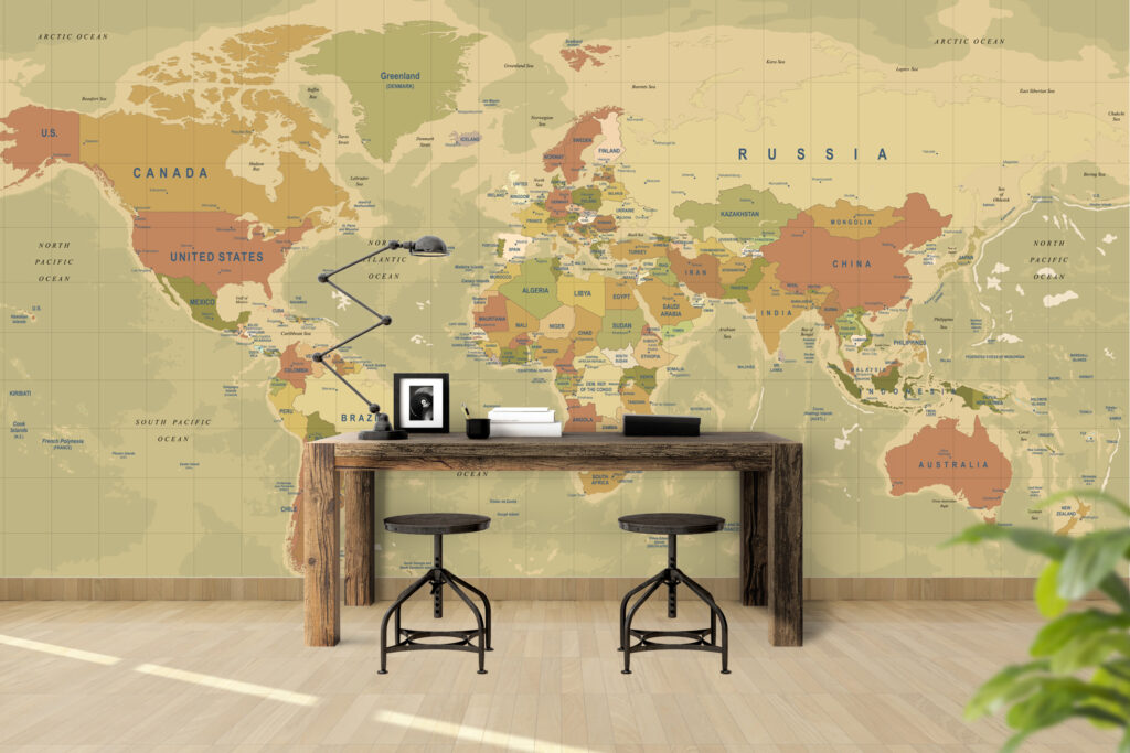 Çok Renkli Dünya Haritası Desenli 3D Duvar Kağıdı | Duvar Kağıdı Marketi üretimi, uygulanmasını isteyeceğiniz boyut ve konumuna uygun olarak talepleriniz doğrultusunda size özel imal edilir.