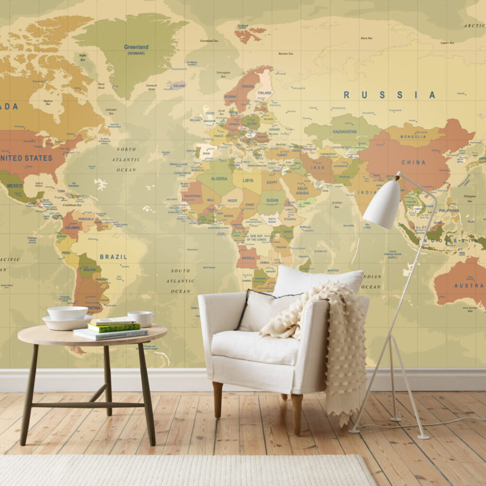 Çok Renkli Dünya Haritası Desenli 3D Duvar Kağıdı | Duvar Kağıdı Marketi Duvar Kağıdı Ürün Bilgisi