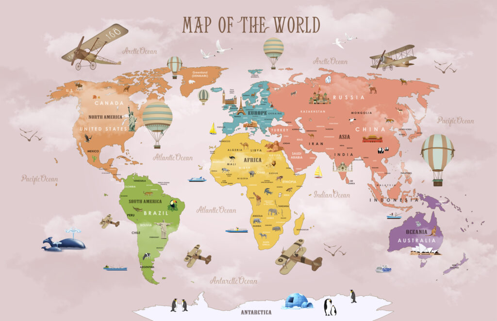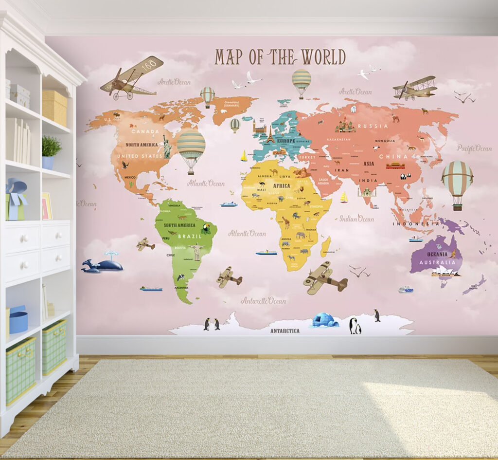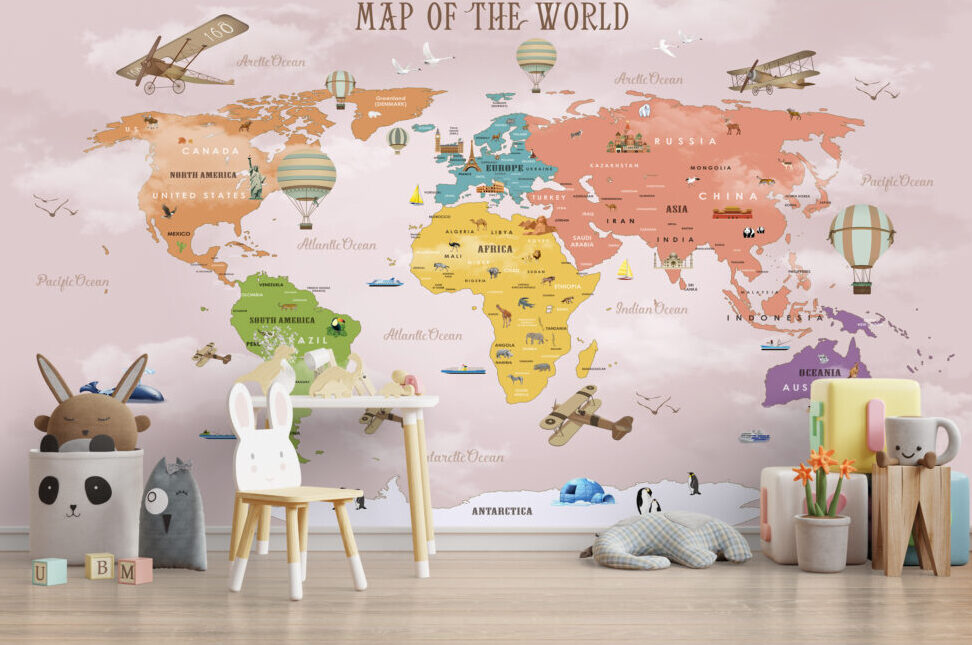 Çok Renkli Şekilli Çocuk Haritası 3D Duvar Kağıdı | Duvar Kağıdı Marketi Duvar Kağıdı Ürün Bilgisi