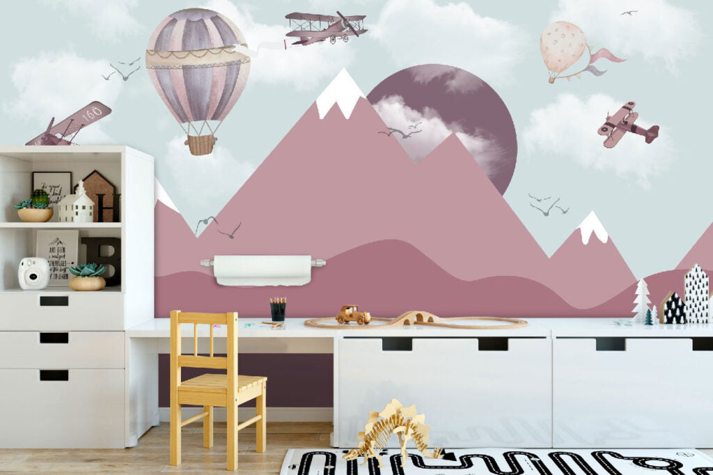 Dağ Manzaralı Balon ve Uçak Desenli Duvar Kağıdı Duvar Kağıdı Ürün Bilgisi