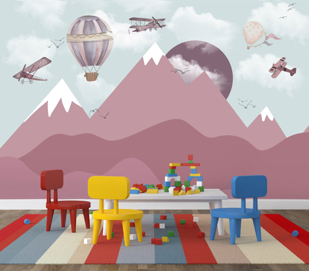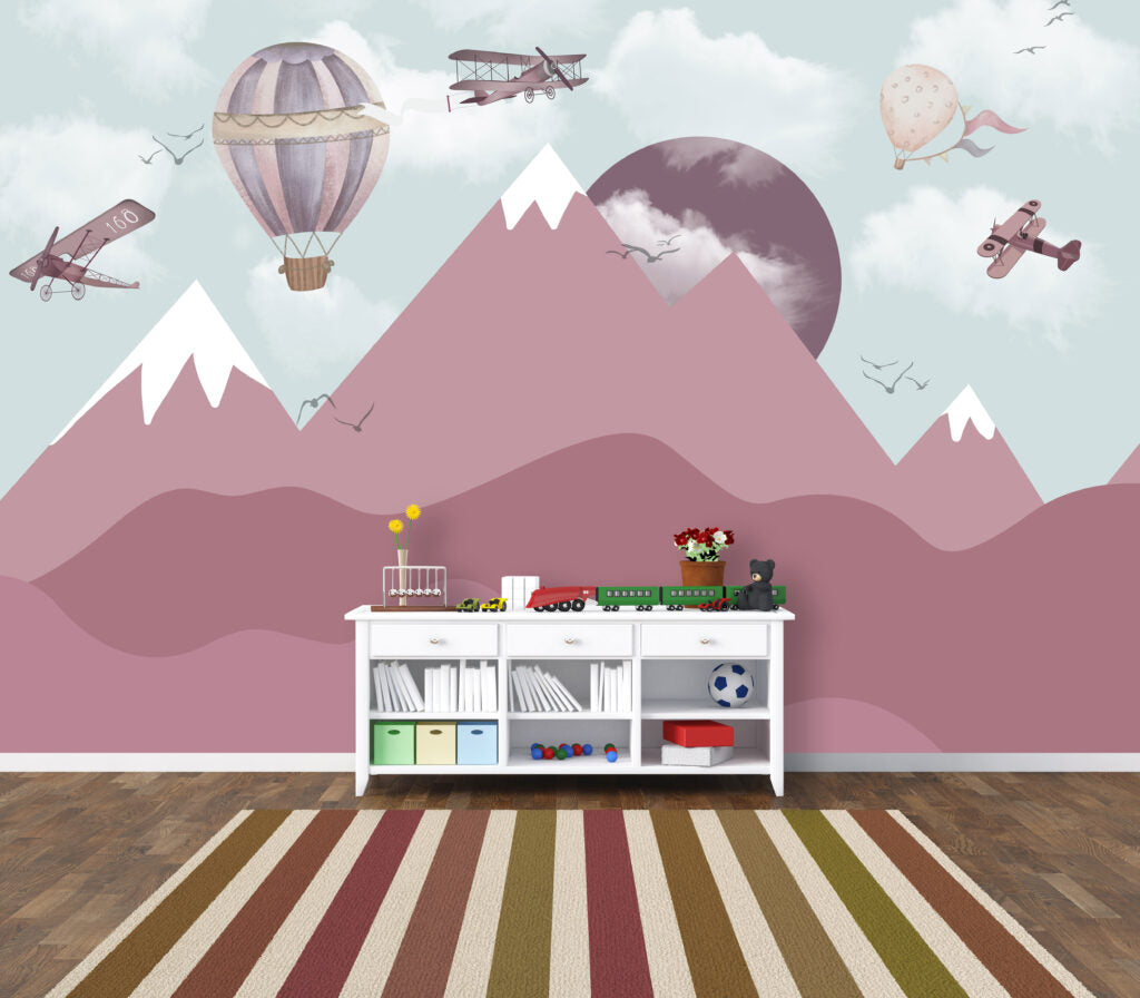 Dağ Manzaralı Balon ve Uçak Desenli Duvar Kağıdı üretimi, uygulanmasını isteyeceğiniz boyut ve konumuna uygun olarak talepleriniz doğrultusunda size özel imal edilir.