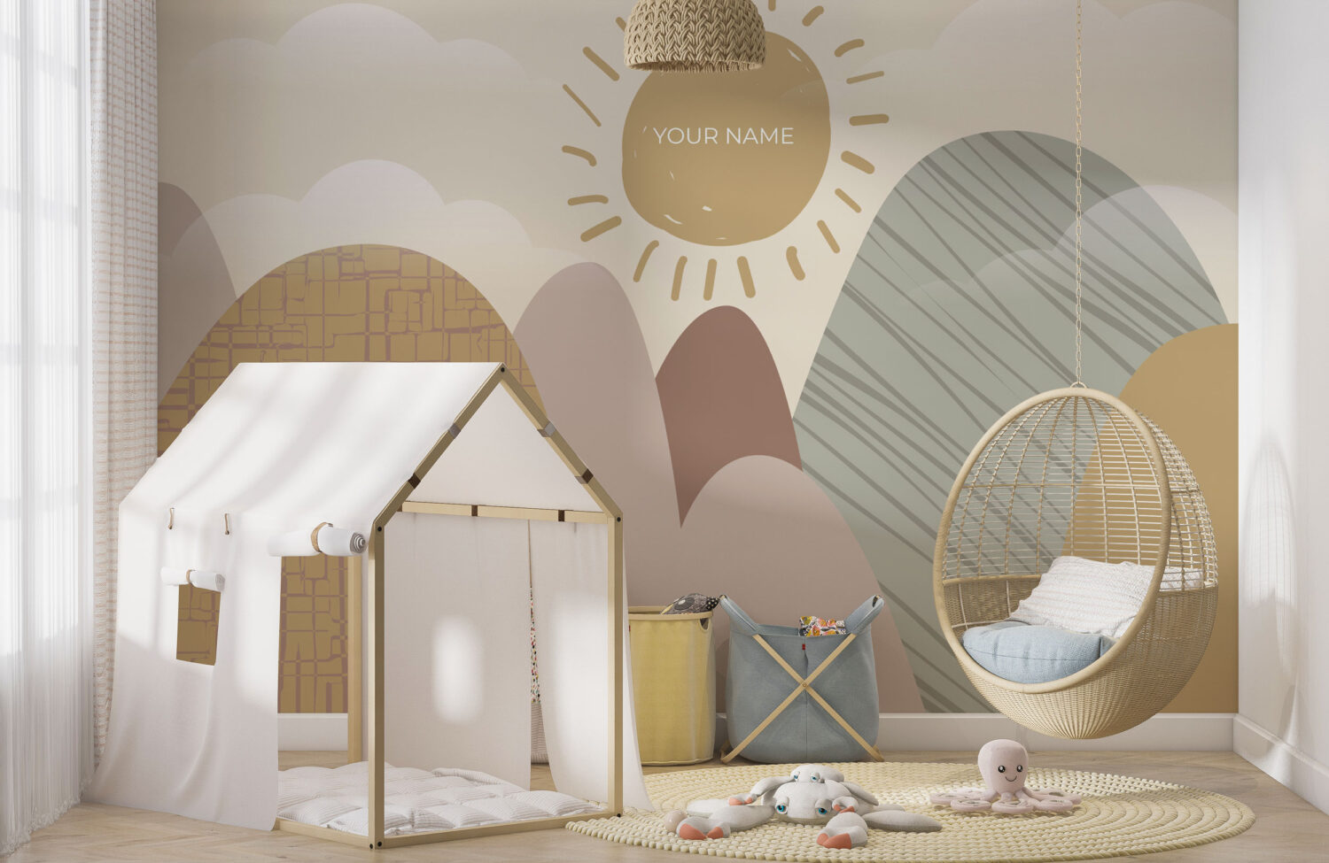 Dağ ve Güneş Kişiye Özel Çocuk Duvar Kağıdı üretimi, uygulanmasını isteyeceğiniz boyut ve konumuna uygun olarak talepleriniz doğrultusunda size özel imal edilir.
