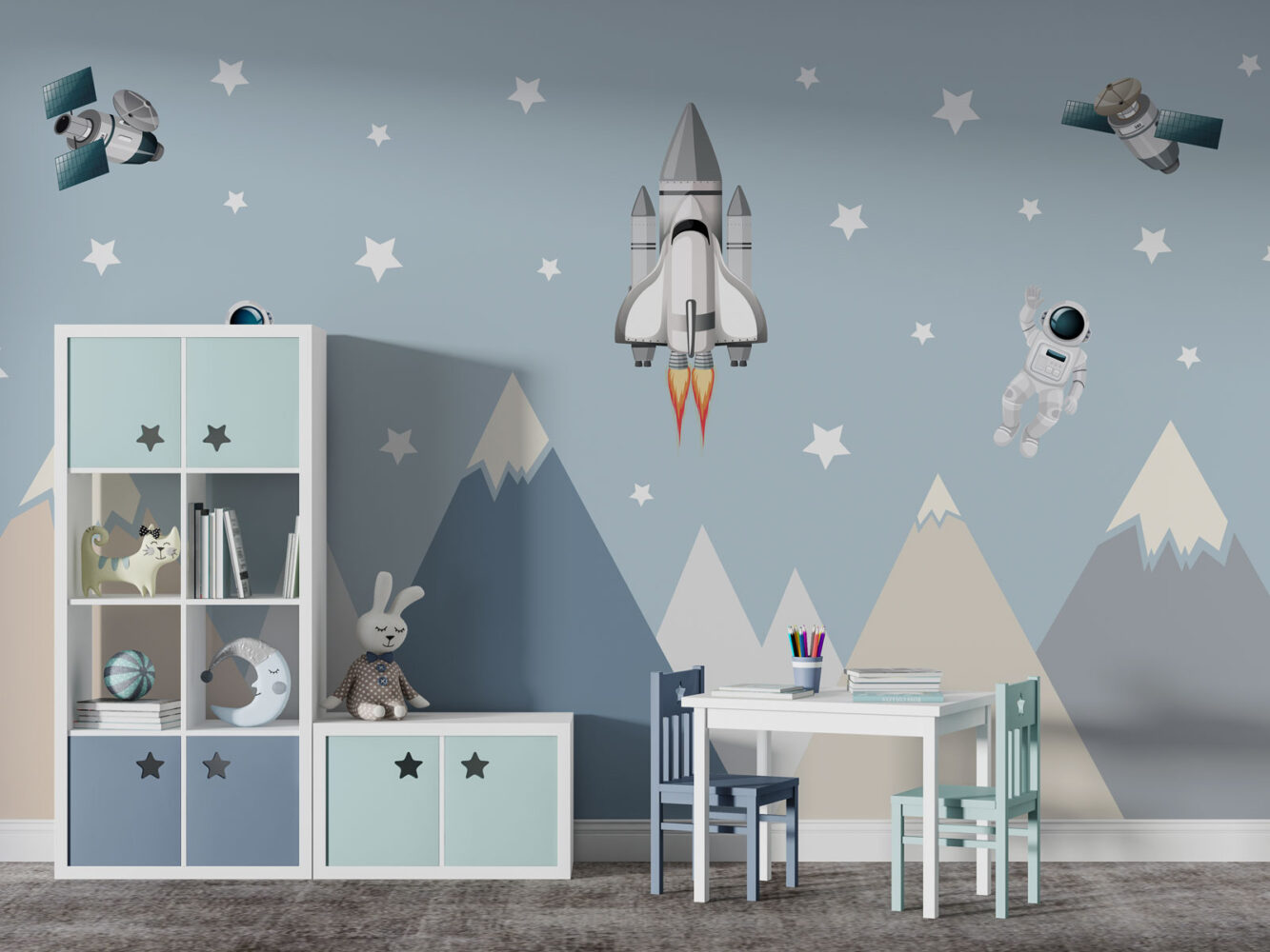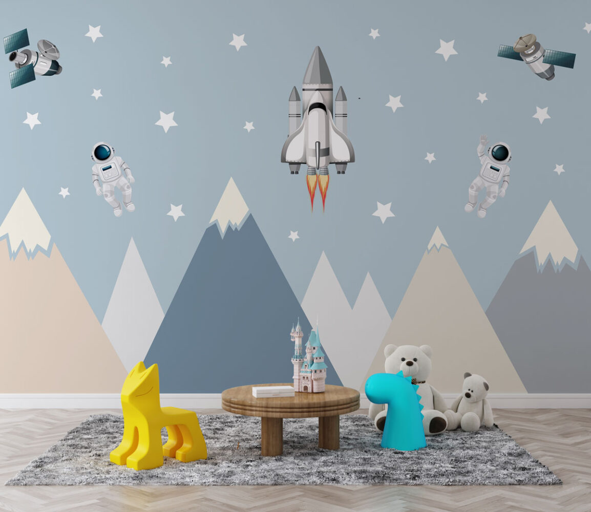 Dağlar ve Astronot Figürleri Uzay Duvar Kağıdı üretimi, uygulanmasını isteyeceğiniz boyut ve konumuna uygun olarak talepleriniz doğrultusunda size özel imal edilir.