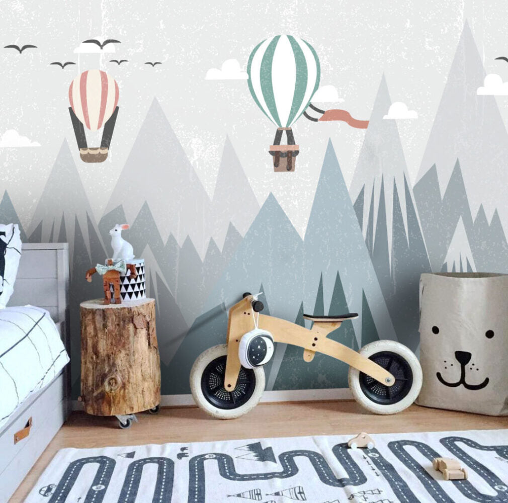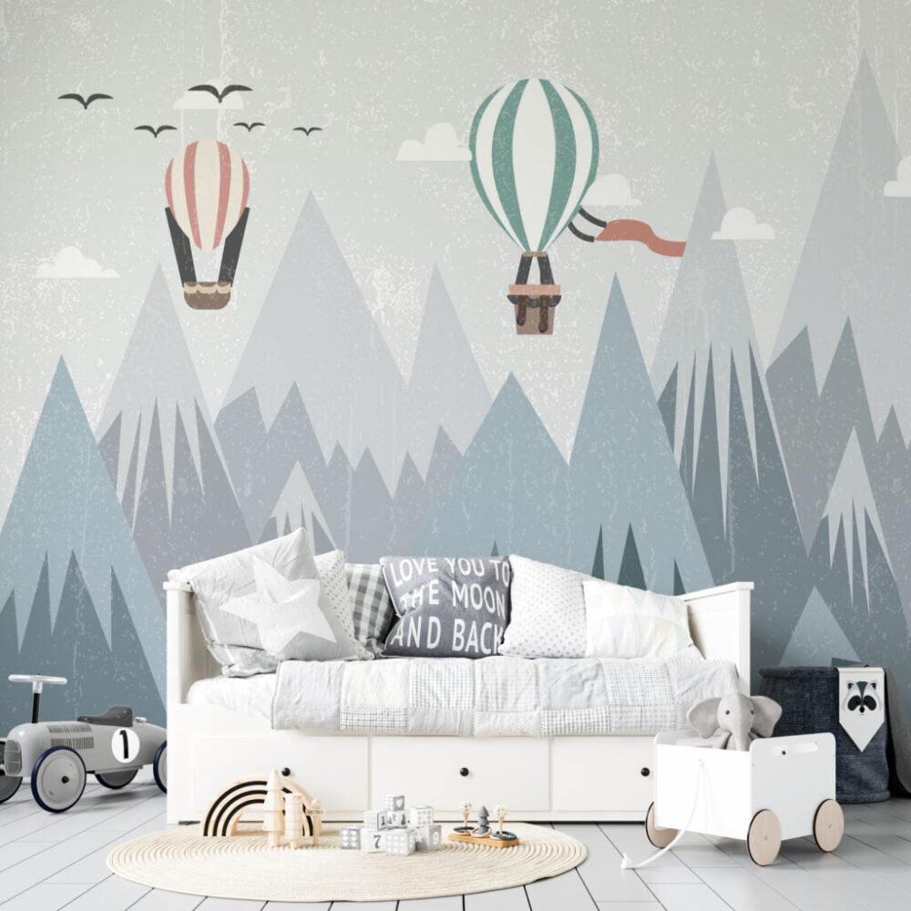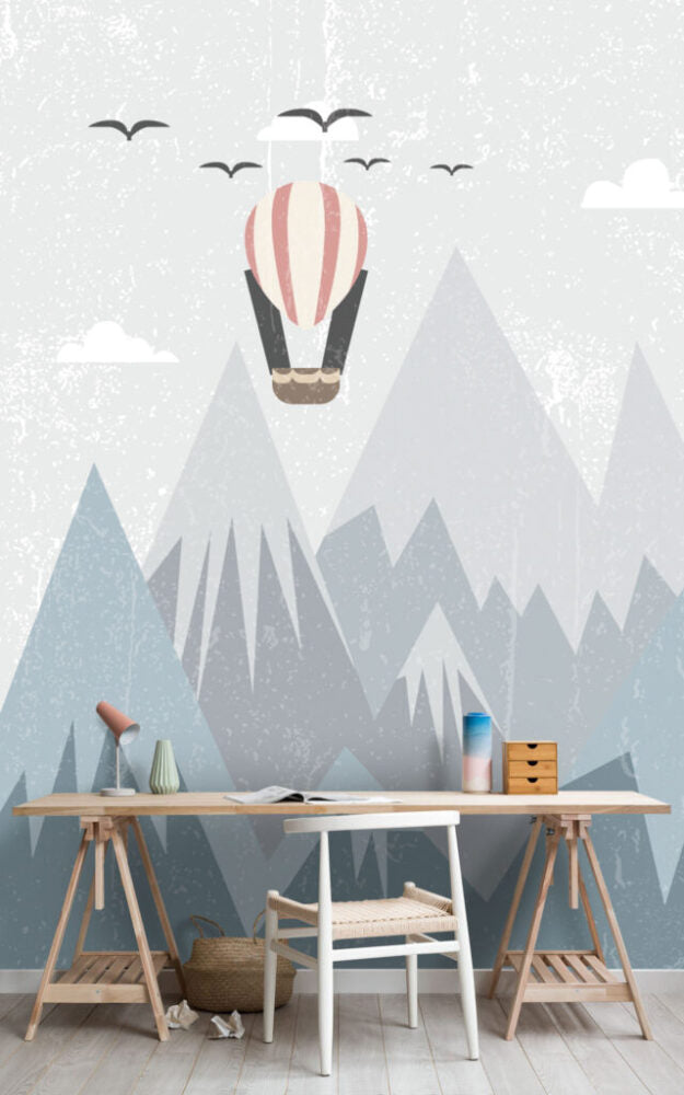 Dağların Arasında Uçan Balon ve Kuş Desenli Duvar Kağıdı üretimi, uygulanmasını isteyeceğiniz boyut ve konumuna uygun olarak talepleriniz doğrultusunda size özel imal edilir.
