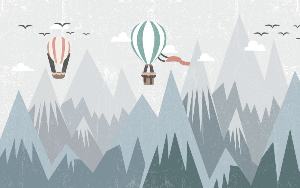 Dağların Arasında Uçan Balon ve Kuş Desenli Duvar Kağıdı