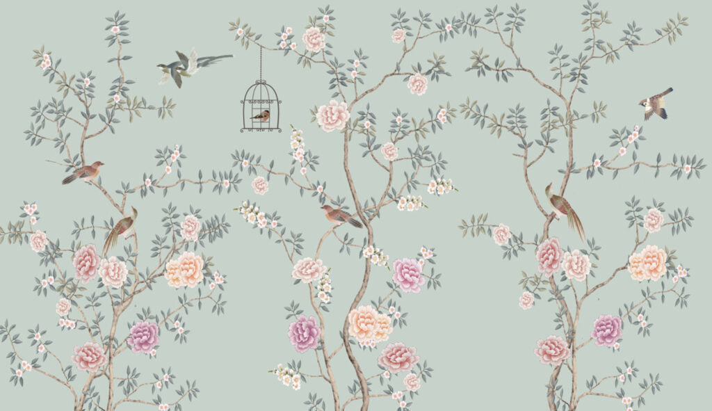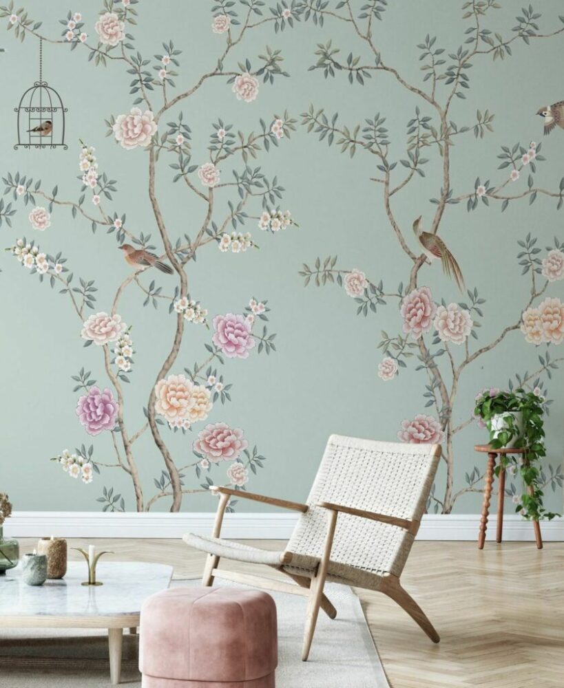 Daldaki Kuşlar Yeşil Tonlu 3D Duvar Kağıdı Duvar Kağıdı Ürün Bilgisi
