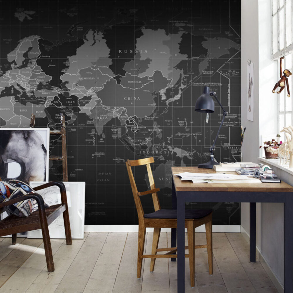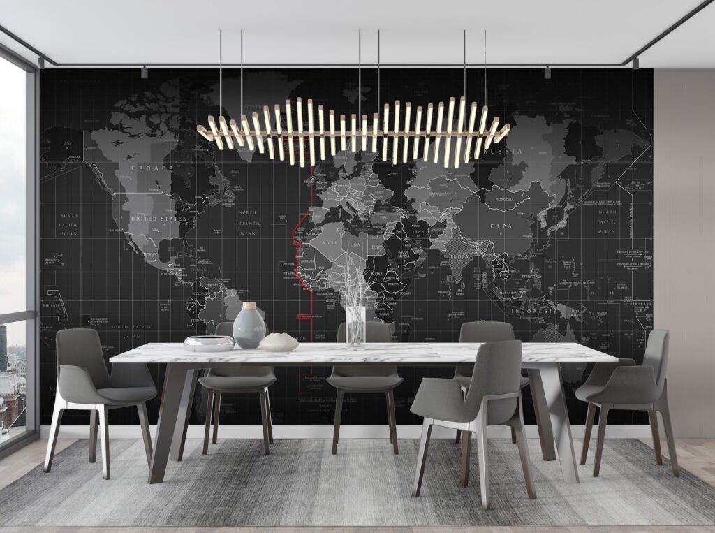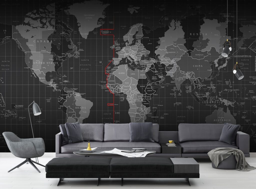 Dijital Siyah Dünya Haritası Desenli 3D Duvar Kağıdı | Duvar Kağıdı Marketi Duvar Kağıdı Ürün Bilgisi