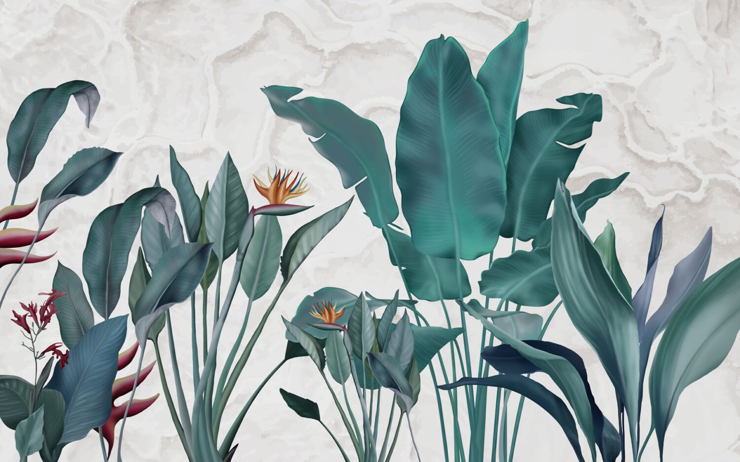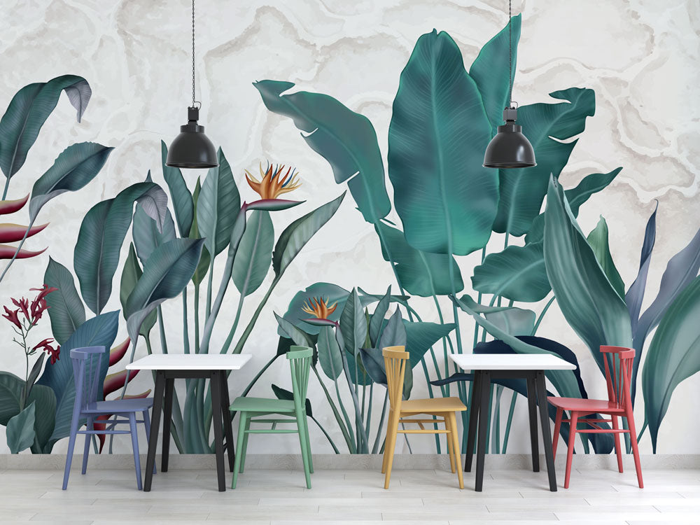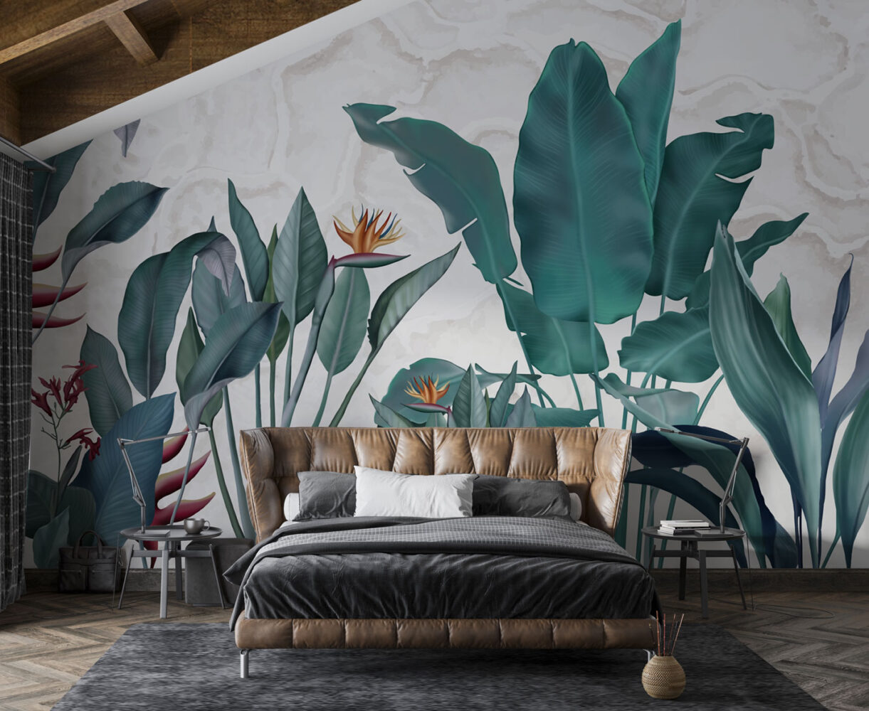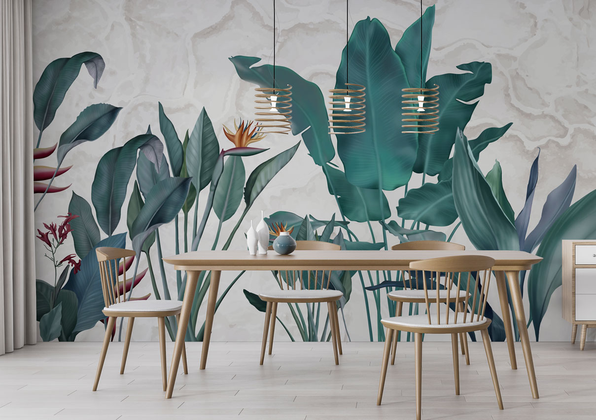 Dokulu Büyük Tropikal Yapraklar Duvar Kağıdı üretimi, uygulanmasını isteyeceğiniz boyut ve konumuna uygun olarak talepleriniz doğrultusunda size özel imal edilir.