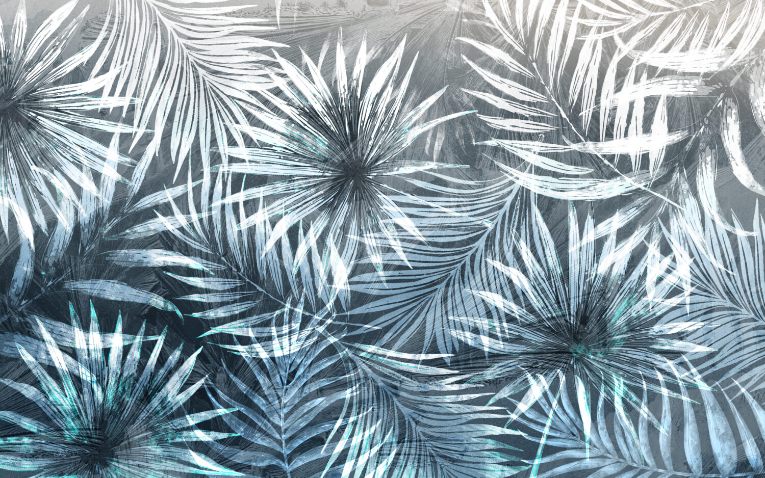 Dokulu Mavi Tropikal Yapraklar Duvar Kağıdı