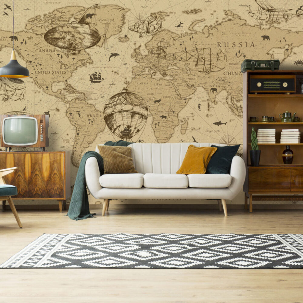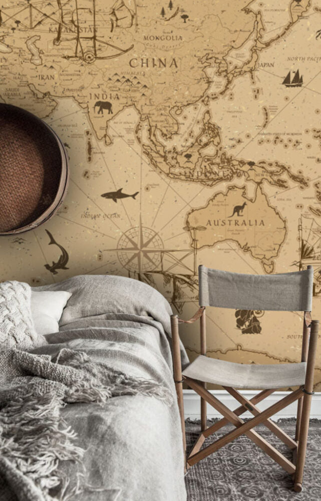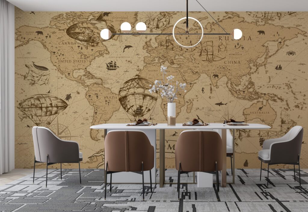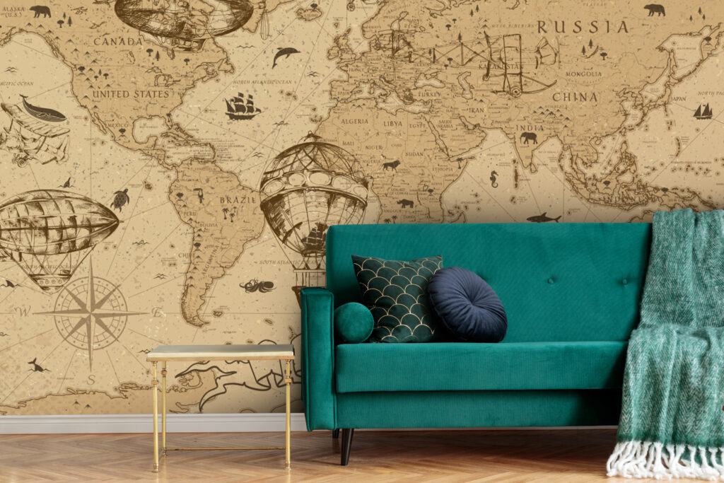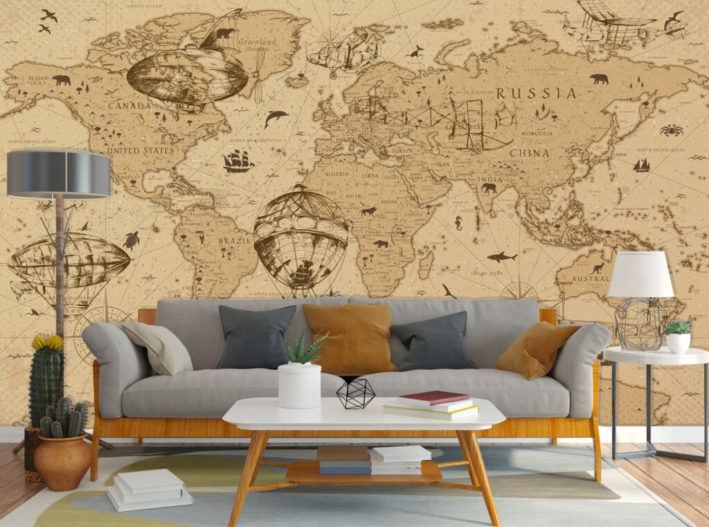 Eski Dünya Haritası ve Farklı Şekil Desenli 3D Duvar Kağıdı | Duvar Kağıdı Marketi Duvar Kağıdı Ürün Bilgisi