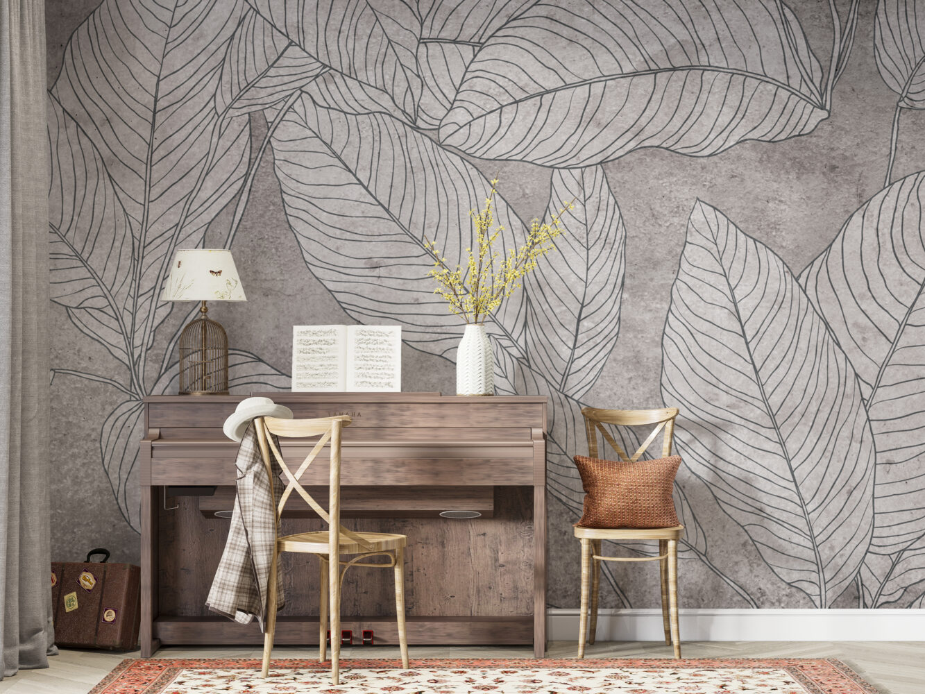 Eski Görünümlü Zemin Ve Yapraklar Desenleri Duvar Kağıdı Duvar Kağıdı Ürün Bilgisi