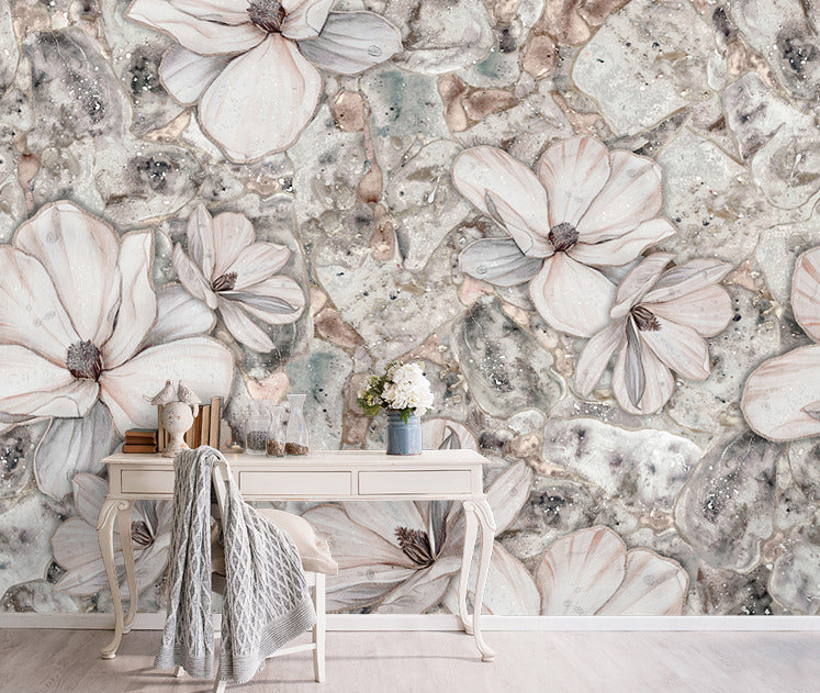Eskitmeli Papatya Çiçekler 3D Duvar Kağıdı