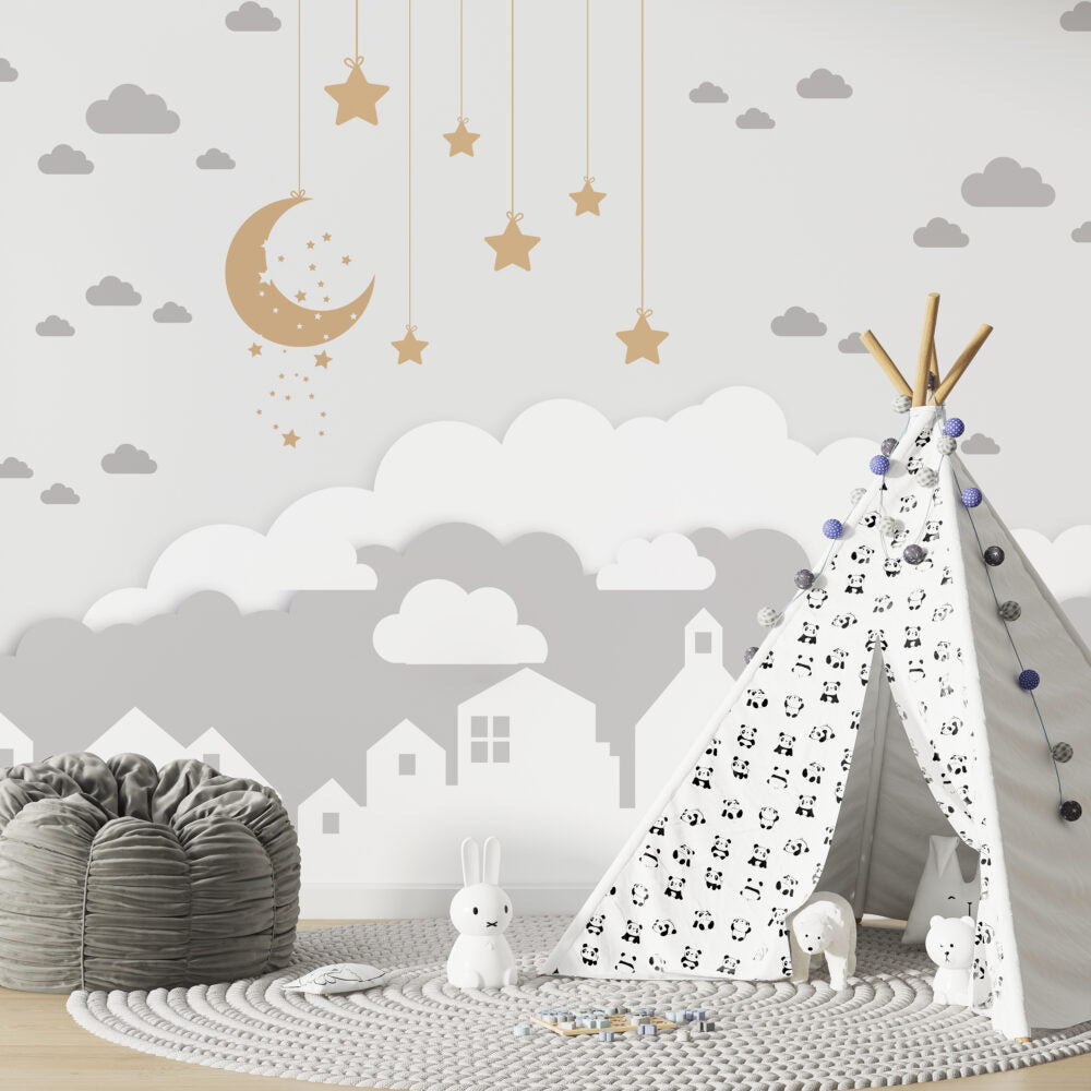 Evler Ve Gökyüzü Çocuklar İçin Duvar Kağıdı üretimi, uygulanmasını isteyeceğiniz boyut ve konumuna uygun olarak talepleriniz doğrultusunda size özel imal edilir.